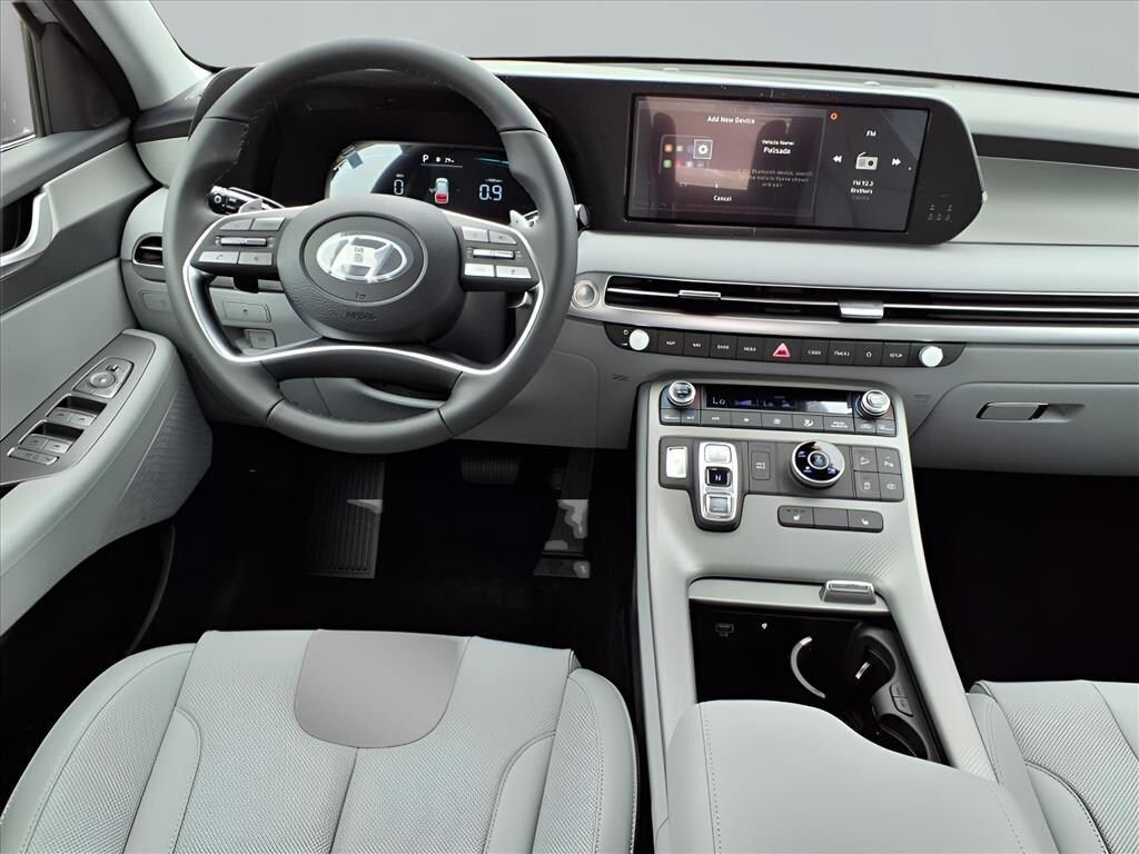 Typhoon Silver 2025 Hyundai Palisade SEL 4D Sport Utility V6 AWD 8-Speed Automatic with SHIFTRONIC 3rd row seats: split-bench, 4-Wheel Disc Brakes, 6 Speakers, ABS brakes, Air Conditioning, All-Season Fitted Liners, Alloy wheels, AM/FM radio: SiriusXM, Apple CarPlay & Android Auto, Auto High-beam Headlights, Auto-dimming Rear-View mirror, Automatic temperature control, Brake assist, Bumpers: body-color, Cargo Net, Cargo Tray, Carpeted Floor Mats, Delay-off headlights, Driver door bin, Driver vanity mirror, Dual front impact airbags, Dual front side impact airbags, Electronic Stability Control, Emergency communication system, Exterior Parking Camera Rear, First Aid Kit, Four wheel independent suspension, Front anti-roll bar, Front Bucket Seats, Front Center Armrest, Front dual zone A/C, Front reading lights, Fully automatic headlights, H-Tex Leatherette Seat Trim, Heated door mirrors, Heated Front Bucket Seats, Heated front seats, Illuminated entry, Knee airbag, Leather steering wheel, Low tire pressure warning, Navigation System, Occupant sensing airbag, Option Group 01, Outside temperature display, Overhead airbag, Overhead console, Panic alarm, Passenger door bin, Passenger vanity mirror, Power door mirrors, Power driver seat, Power Liftgate, Power passenger seat, Power steering, Power windows, Radio data system, Radio: AM/FM/MP3 Audio System, Rear air conditioning, Rear anti-roll bar, Rear audio controls, Rear reading lights, Rear side impact airbag, Rear window defroster, Rear window wiper, Reclining 3rd row seat, Remote keyless entry, Security system, Speed control, Speed-sensing steering, Split folding rear seat, Spoiler, Steering wheel mounted audio controls, Tachometer, Telescoping steering wheel, Tilt steering wheel, Traction control, Trip computer, Turn signal indicator mirrors, Variably intermittent wipers, Wheel Locks, Wheels: 18" x 7.5J Painted Finish Alloy.