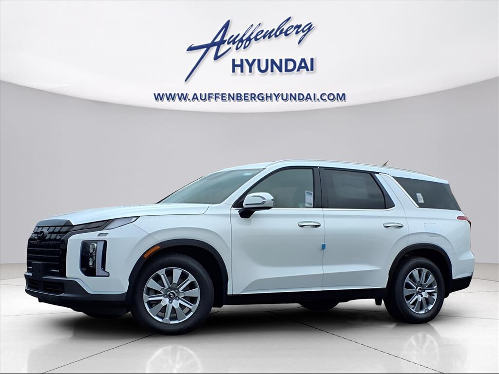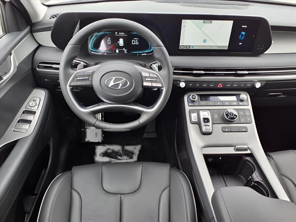 Hyper White 2025 Hyundai Palisade SEL 4D Sport Utility V6 AWD 8-Speed Automatic with SHIFTRONIC 3rd row seats: split-bench, 4-Wheel Disc Brakes, 6 Speakers, ABS brakes, Air Conditioning, Alloy wheels, AM/FM radio: SiriusXM, Apple CarPlay & Android Auto, Auto High-beam Headlights, Auto-dimming Rear-View mirror, Automatic temperature control, Brake assist, Bumpers: body-color, Cargo Net, Cargo Tray, Carpeted Floor Mats, Delay-off headlights, Driver door bin, Driver vanity mirror, Dual front impact airbags, Dual front side impact airbags, Electronic Stability Control, Emergency communication system, Exterior Parking Camera Rear, First Aid Kit, Four wheel independent suspension, Front anti-roll bar, Front Bucket Seats, Front Center Armrest, Front dual zone A/C, Front reading lights, Fully automatic headlights, H-Tex Leatherette Seat Trim, Heated door mirrors, Heated Front Bucket Seats, Heated front seats, Illuminated entry, Knee airbag, Leather steering wheel, Low tire pressure warning, Mudguards, Navigation System, Occupant sensing airbag, Option Group 01, Outside temperature display, Overhead airbag, Overhead console, Panic alarm, Passenger door bin, Passenger vanity mirror, Power door mirrors, Power driver seat, Power Liftgate, Power passenger seat, Power steering, Power windows, Radio data system, Radio: AM/FM/MP3 Audio System, Rear air conditioning, Rear anti-roll bar, Rear audio controls, Rear reading lights, Rear side impact airbag, Rear window defroster, Rear window wiper, Reclining 3rd row seat, Remote keyless entry, Roadside Assistance Kit, Security system, Severe Weather Kit, Speed control, Speed-sensing steering, Split folding rear seat, Spoiler, Steering wheel mounted audio controls, Tachometer, Telescoping steering wheel, Tilt steering wheel, Traction control, Trip computer, Turn signal indicator mirrors, Variably intermittent wipers, Wheel Locks, Wheels: 18" x 7.5J Painted Finish Alloy.