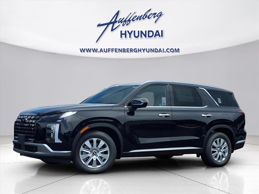 Abyss Black Pearl 2025 Hyundai Palisade SEL 4D Sport Utility V6 AWD 8-Speed Automatic with SHIFTRONIC 3rd row seats: split-bench, 4-Wheel Disc Brakes, 6 Speakers, ABS brakes, Air Conditioning, Alloy wheels, AM/FM radio: SiriusXM, Apple CarPlay & Android Auto, Auto High-beam Headlights, Auto-dimming Rear-View mirror, Automatic temperature control, Brake assist, Bumpers: body-color, Cargo Cover, Cargo Net, Cargo Tray, Carpeted Floor Mats, Delay-off headlights, Driver door bin, Driver vanity mirror, Dual front impact airbags, Dual front side impact airbags, Electronic Stability Control, Emergency communication system, Exterior Parking Camera Rear, First Aid Kit, Four wheel independent suspension, Front anti-roll bar, Front Bucket Seats, Front Center Armrest, Front dual zone A/C, Front reading lights, Fully automatic headlights, H-Tex Leatherette Seat Trim, Heated door mirrors, Heated Front Bucket Seats, Heated front seats, Illuminated entry, Knee airbag, Leather steering wheel, Low tire pressure warning, Mudguards, Navigation System, Occupant sensing airbag, Option Group 01, Outside temperature display, Overhead airbag, Overhead console, Panic alarm, Passenger door bin, Passenger vanity mirror, Power door mirrors, Power driver seat, Power Liftgate, Power passenger seat, Power steering, Power windows, Radio data system, Radio: AM/FM/MP3 Audio System, Rear air conditioning, Rear anti-roll bar, Rear audio controls, Rear reading lights, Rear side impact airbag, Rear window defroster, Rear window wiper, Reclining 3rd row seat, Remote keyless entry, Security system, Speed control, Speed-sensing steering, Split folding rear seat, Spoiler, Steering wheel mounted audio controls, Tachometer, Telescoping steering wheel, Tilt steering wheel, Traction control, Trip computer, Turn signal indicator mirrors, Variably intermittent wipers, Wheels: 18" x 7.5J Painted Finish Alloy.