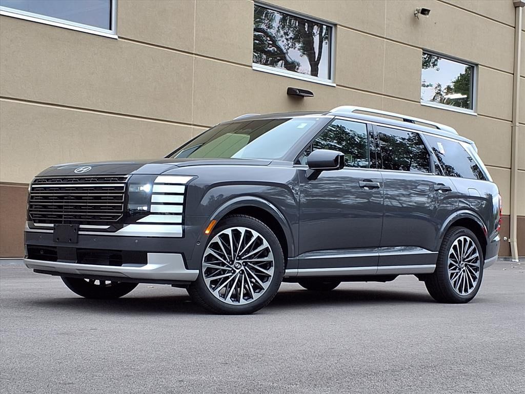 Ecotronic Gray Pearl 2026 Hyundai Palisade Calligraphy 4D Sport Utility V6 AWD 8-Speed Automatic 14 Speakers, 3rd row seats: split-bench, 4-Wheel Disc Brakes, ABS brakes, Air Conditioning, Alloy wheels, AM/FM radio: SiriusXM, Apple CarPlay & Android Auto, Audio memory, Auto High-beam Headlights, Auto-dimming door mirrors, Auto-dimming Rear-View mirror, Auto-leveling suspension, Automatic temperature control, Brake assist, Bumpers: body-color, Cargo Cover, Cargo Net, Cargo Tray, Carpeted Floor Mats, Compass, Delay-off headlights, Driver door bin, Driver vanity mirror, Dual front impact airbags, Dual front side impact airbags, Electronic Stability Control, Emergency communication system: Bluelink+, Exterior Parking Camera Rear, First Aid Kit, Four wheel independent suspension, Front anti-roll bar, Front Bucket Seats, Front Center Armrest, Front dual zone A/C, Front reading lights, Fully automatic headlights, Garage door transmitter: HomeLink, Genuine wood console insert, Genuine wood dashboard insert, Heads-Up Display, Heated & Ventilated Front Bucket Seats, Heated door mirrors, Heated front seats, Heated rear seats, Heated steering wheel, HVAC memory, Illuminated entry, Knee airbag, Leather steering wheel, Low tire pressure warning, Memory seat, Navigation System, Occupant sensing airbag, Option Group 01, Outside temperature display, Overhead airbag, Overhead console, Panic alarm, Passenger door bin, Passenger vanity mirror, Power door mirrors, Power driver seat, Power Liftgate, Power moonroof, Power passenger seat, Power steering, Power windows, Premium Nappa Leather Seat Trim, Radio data system, Radio: Infotainment Navigation System, Rain sensing wipers, Rear air conditioning, Rear anti-roll bar, Rear audio controls, Rear reading lights, Rear side impact airbag, Rear window defroster, Rear window wiper, Reclining 3rd row seat, Remote keyless entry, Security system, Speed control, Split folding rear seat, Spoiler, Steering wheel mounted audio controls, Tachometer, Telescoping steering wheel, Tilt steering wheel, Traction control, Trip computer, Turn signal indicator mirrors, Variably intermittent wipers, Ventilated front seats, Ventilated rear seats, Wheels: 21" x 8.5J Alloy. Price includes$1250 - Hyundai HMF Dealer Choice : $1250 discount and 5.99% APR for 24 months. $44.32 per $1000 financed. Available to well qualified buyers who finance through Hyundai Motor Finance. H704. Exp. 11/03/2025