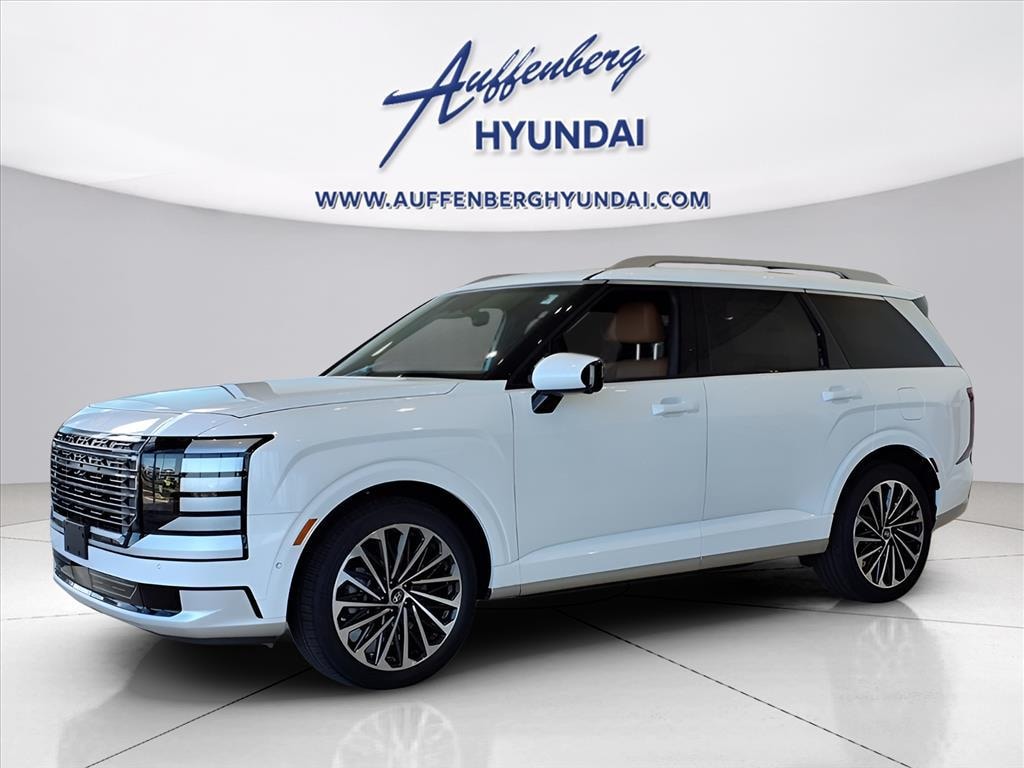 Creamy White Pearl 2026 Hyundai Palisade Calligraphy 4D Sport Utility V6 AWD 8-Speed Automatic 14 Speakers, 3rd row seats: split-bench, 4-Wheel Disc Brakes, ABS brakes, Air Conditioning, Alloy wheels, AM/FM radio: SiriusXM, Apple CarPlay & Android Auto, Audio memory, Auto High-beam Headlights, Auto-dimming door mirrors, Auto-dimming Rear-View mirror, Auto-leveling suspension, Automatic temperature control, Brake assist, Bumpers: body-color, Cargo Cover, Cargo Net, Cargo Tray, Carpeted Floor Mats, Compass, Delay-off headlights, Driver door bin, Driver vanity mirror, Dual front impact airbags, Dual front side impact airbags, Electronic Stability Control, Emergency communication system: Bluelink+, Exterior Parking Camera Rear, First Aid Kit, Four wheel independent suspension, Front anti-roll bar, Front Bucket Seats, Front Center Armrest, Front dual zone A/C, Front reading lights, Fully automatic headlights, Garage door transmitter: HomeLink, Genuine wood console insert, Genuine wood dashboard insert, Heads-Up Display, Heated & Ventilated Front Bucket Seats, Heated door mirrors, Heated front seats, Heated rear seats, Heated steering wheel, HVAC memory, Illuminated entry, Knee airbag, Leather steering wheel, Low tire pressure warning, Memory seat, Navigation System, Occupant sensing airbag, Option Group 01, Outside temperature display, Overhead airbag, Overhead console, Panic alarm, Passenger door bin, Passenger vanity mirror, Power door mirrors, Power driver seat, Power Liftgate, Power moonroof, Power passenger seat, Power steering, Power windows, Premium Nappa Leather Seat Trim, Radio data system, Radio: Infotainment Navigation System, Rain sensing wipers, Rear air conditioning, Rear anti-roll bar, Rear audio controls, Rear reading lights, Rear side impact airbag, Rear window defroster, Rear window wiper, Reclining 3rd row seat, Remote keyless entry, Security system, Speed control, Split folding rear seat, Spoiler, Steering wheel mounted audio controls, Tachometer, Telescoping steering wheel, Tilt steering wheel, Traction control, Trip computer, Turn signal indicator mirrors, Variably intermittent wipers, Ventilated front seats, Ventilated rear seats, Wheels: 21" x 8.5J Alloy. Price includes$2250 - Hyundai HMF Dealer Choice: $2250 discount and 5.49% APR for 24 months. $44.09 per $1000 financed. Available to well qualified buyers who finance through Hyundai Motor Finance. H704. Exp. 01/02/2026