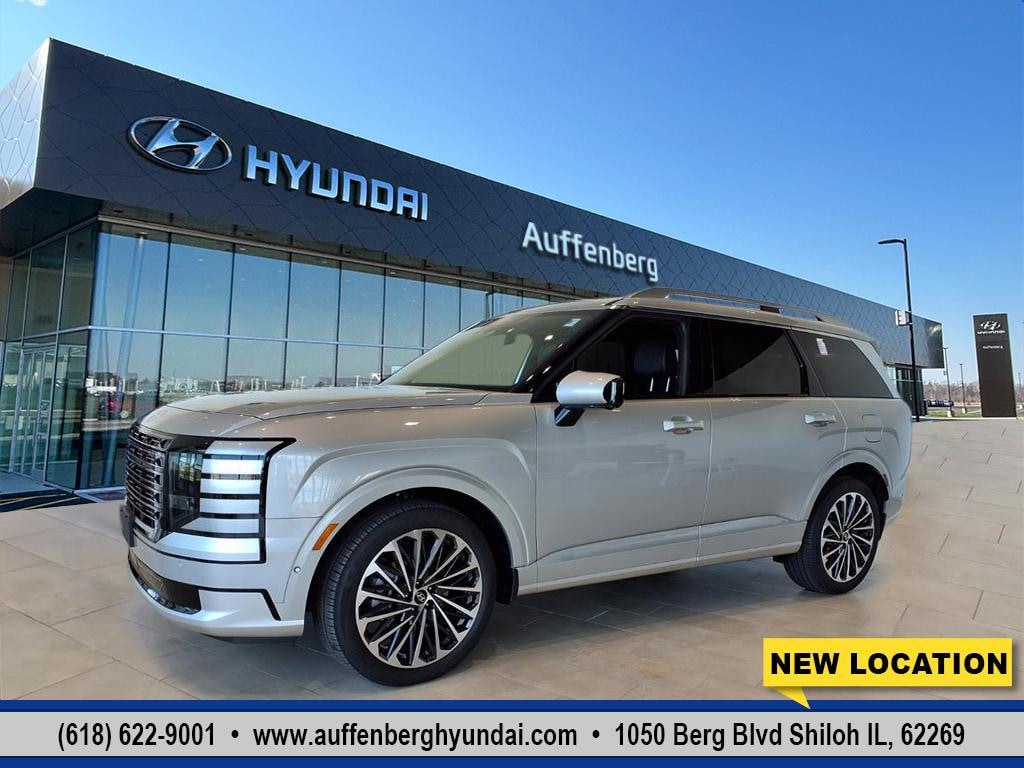 Typhoon Silver Metallic 2026 Hyundai Palisade Calligraphy 4D Sport Utility V6 AWD 8-Speed Automatic 14 Speakers, 3rd row seats: split-bench, 4-Wheel Disc Brakes, ABS brakes, Air Conditioning, Alloy wheels, AM/FM radio: SiriusXM, Apple CarPlay & Android Auto, Audio memory, Auto High-beam Headlights, Auto-dimming door mirrors, Auto-dimming Rear-View mirror, Auto-leveling suspension, Automatic temperature control, Brake assist, Bumpers: body-color, Cargo Net, Cargo Tray, Carpeted Floor Mats, Compass, Delay-off headlights, Driver door bin, Driver vanity mirror, Dual front impact airbags, Dual front side impact airbags, Electronic Stability Control, Emergency communication system: Bluelink+, Exterior Parking Camera Rear, First Aid Kit, Four wheel independent suspension, Front anti-roll bar, Front Bucket Seats, Front Center Armrest, Front dual zone A/C, Front reading lights, Fully automatic headlights, Garage door transmitter: HomeLink, Genuine wood console insert, Genuine wood dashboard insert, Heads-Up Display, Heated & Ventilated Front Bucket Seats, Heated door mirrors, Heated front seats, Heated rear seats, Heated steering wheel, HVAC memory, Illuminated entry, Knee airbag, Leather steering wheel, Low tire pressure warning, Memory seat, Mud Guards, Navigation System, Occupant sensing airbag, Option Group 01, Outside temperature display, Overhead airbag, Overhead console, Panic alarm, Passenger door bin, Passenger vanity mirror, Power door mirrors, Power driver seat, Power Liftgate, Power moonroof, Power passenger seat, Power steering, Power windows, Premium Nappa Leather Seat Trim, Radio data system, Radio: Infotainment Navigation System, Rain sensing wipers, Rear air conditioning, Rear anti-roll bar, Rear audio controls, Rear reading lights, Rear side impact airbag, Rear window defroster, Rear window wiper, Reclining 3rd row seat, Remote keyless entry, Security system, Speed control, Split folding rear seat, Spoiler, Steering wheel mounted audio controls, Tachometer, Telescoping steering wheel, Tilt steering wheel, Traction control, Trip computer, Turn signal indicator mirrors, Variably intermittent wipers, Ventilated front seats, Ventilated rear seats, Wheels: 21" x 8.5J Alloy. Price includes$1250 - Hyundai HMF Dealer Choice : $1250 discount and 5.49% APR for 24 months. $44.09 per $1000 financed. Available to well qualified buyers who finance through Hyundai Motor Finance. H704. Exp. 12/01/2025