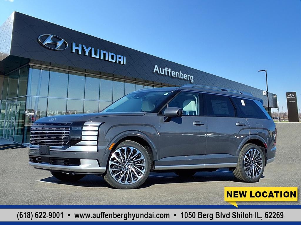 Ecotronic Gray Pearl 2026 Hyundai Palisade Calligraphy 4D Sport Utility V6 AWD 8-Speed Automatic 14 Speakers, 3rd row seats: split-bench, 4-Wheel Disc Brakes, ABS brakes, Air Conditioning, Alloy wheels, AM/FM radio: SiriusXM, Apple CarPlay & Android Auto, Audio memory, Auto High-beam Headlights, Auto-dimming door mirrors, Auto-dimming Rear-View mirror, Auto-leveling suspension, Automatic temperature control, Brake assist, Bumpers: body-color, Cargo Net, Cargo Tray, Carpeted Floor Mats, Compass, Delay-off headlights, Driver door bin, Driver vanity mirror, Dual front impact airbags, Dual front side impact airbags, Electronic Stability Control, Emergency communication system: Bluelink+, Exterior Parking Camera Rear, First Aid Kit, Four wheel independent suspension, Front anti-roll bar, Front Bucket Seats, Front Center Armrest, Front dual zone A/C, Front reading lights, Fully automatic headlights, Garage door transmitter: HomeLink, Genuine wood console insert, Genuine wood dashboard insert, Heads-Up Display, Heated & Ventilated Front Bucket Seats, Heated door mirrors, Heated front seats, Heated rear seats, Heated steering wheel, HVAC memory, Illuminated entry, Knee airbag, Leather steering wheel, Low tire pressure warning, Memory seat, Mud Guards, Navigation System, Occupant sensing airbag, Option Group 01, Outside temperature display, Overhead airbag, Overhead console, Panic alarm, Passenger door bin, Passenger vanity mirror, Power door mirrors, Power driver seat, Power Liftgate, Power moonroof, Power passenger seat, Power steering, Power windows, Premium Nappa Leather Seat Trim, Radio data system, Radio: Infotainment Navigation System, Rain sensing wipers, Rear air conditioning, Rear anti-roll bar, Rear audio controls, Rear reading lights, Rear side impact airbag, Rear window defroster, Rear window wiper, Reclining 3rd row seat, Remote keyless entry, Security system, Speed control, Split folding rear seat, Spoiler, Steering wheel mounted audio controls, Tachometer, Telescoping steering wheel, Tilt steering wheel, Traction control, Trip computer, Turn signal indicator mirrors, Variably intermittent wipers, Ventilated front seats, Ventilated rear seats, Wheels: 21" x 8.5J Alloy. Price includes$1250 - Hyundai HMF Dealer Choice : $1250 discount and 5.49% APR for 24 months. $44.09 per $1000 financed. Available to well qualified buyers who finance through Hyundai Motor Finance. H704. Exp. 12/01/2025