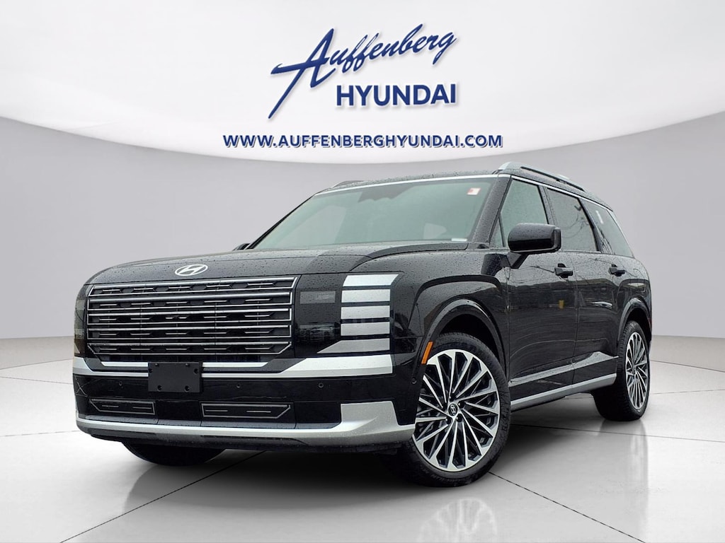 Abyss Black Pearl 2026 Hyundai Palisade Hybrid Calligraphy 4D Sport Utility 2.5L Turbocharged GDI 4-Cylinder Hybrid AWD 6-Speed Automatic 2.5L Turbocharged GDI 4-Cylinder Hybrid, 14 Speakers, 3rd row seats: split-bench, 4-Wheel Disc Brakes, ABS brakes, Air Conditioning, Alloy wheels, AM/FM radio: SiriusXM, Apple CarPlay & Android Auto, Audio memory, Auto High-beam Headlights, Auto-dimming door mirrors, Auto-dimming Rear-View mirror, Auto-leveling suspension, Automatic temperature control, Brake assist, Bumpers: body-color, Cargo Cover, Cargo Organizer, Cargo Tray, Carpeted Floor Mats, Compass, Delay-off headlights, Driver door bin, Driver vanity mirror, Dual front impact airbags, Dual front side impact airbags, Electronic Stability Control, Emergency communication system: None, Exterior Parking Camera Rear, First Aid Kit, Four wheel independent suspension, Front anti-roll bar, Front Bucket Seats, Front Center Armrest, Front dual zone A/C, Front reading lights, Fully automatic headlights, Garage door transmitter: HomeLink, Genuine wood console insert, Genuine wood dashboard insert, Heads-Up Display, Heated and Ventilated Front Bucket Seats, Heated door mirrors, Heated front seats, Heated rear seats, Heated steering wheel, HVAC memory, Illuminated entry, Knee airbag, Leather steering wheel, Low tire pressure warning, Memory seat, Navigation System, Occupant sensing airbag, Option Group 01, Outside temperature display, Overhead airbag, Overhead console, Panic alarm, Passenger door bin, Passenger vanity mirror, Power door mirrors, Power driver seat, Power Liftgate, Power moonroof, Power passenger seat, Power steering, Power windows, Premium Nappa Leather Seat Trim, Radio data system, Radio: Infotainment Navigation System, Rain sensing wipers, Rear air conditioning, Rear anti-roll bar, Rear audio controls, Rear reading lights, Rear side impact airbag, Rear window defroster, Rear window wiper, Reclining 3rd row seat, Remote keyless entry, Security system, Speed control, Split folding rear seat, Spoiler, Steering wheel mounted audio controls, Tachometer, Telescoping steering wheel, Tilt steering wheel, Traction control, Trip computer, Turn signal indicator mirrors, Variably intermittent wipers, Ventilated front seats, Ventilated rear seats, Wheels: 21" x 8.5J Alloy, 2.5L Turbocharged GDI 4-Cylinder Hybrid.