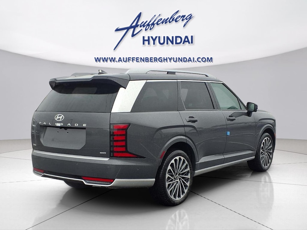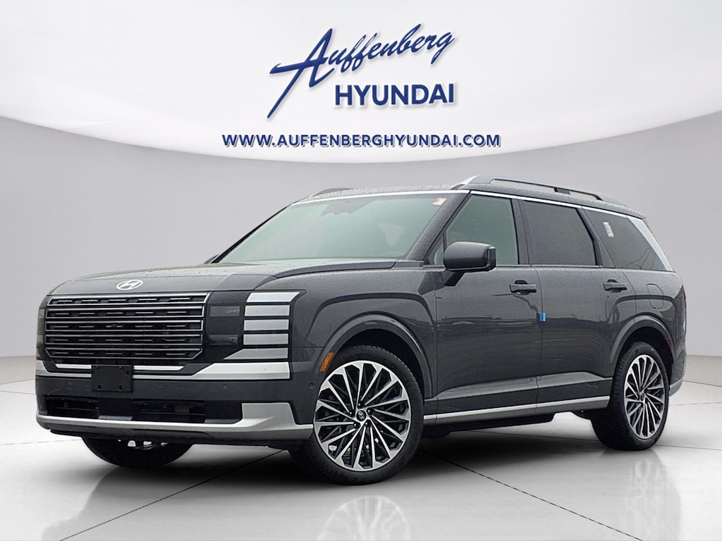 Ecotronic Gray Pearl 2026 Hyundai Palisade Hybrid Calligraphy 4D Sport Utility 2.5L Turbocharged GDI 4-Cylinder Hybrid AWD 6-Speed Automatic 2.5L Turbocharged GDI 4-Cylinder Hybrid, 14 Speakers, 3rd row seats: split-bench, 4-Wheel Disc Brakes, ABS brakes, Air Conditioning, Alloy wheels, AM/FM radio: SiriusXM, Apple CarPlay & Android Auto, Audio memory, Auto High-beam Headlights, Auto-dimming door mirrors, Auto-dimming Rear-View mirror, Auto-leveling suspension, Automatic temperature control, Brake assist, Bumpers: body-color, Cargo Cover, Cargo Organizer, Cargo Tray, Carpeted Floor Mats, Compass, Delay-off headlights, Driver door bin, Driver vanity mirror, Dual front impact airbags, Dual front side impact airbags, Electronic Stability Control, Emergency communication system: None, Exterior Parking Camera Rear, First Aid Kit, Four wheel independent suspension, Front anti-roll bar, Front Bucket Seats, Front Center Armrest, Front dual zone A/C, Front reading lights, Fully automatic headlights, Garage door transmitter: HomeLink, Genuine wood console insert, Genuine wood dashboard insert, Heads-Up Display, Heated and Ventilated Front Bucket Seats, Heated door mirrors, Heated front seats, Heated rear seats, Heated steering wheel, HVAC memory, Illuminated entry, Knee airbag, Leather steering wheel, Low tire pressure warning, Memory seat, Navigation System, Occupant sensing airbag, Option Group 01, Outside temperature display, Overhead airbag, Overhead console, Panic alarm, Passenger door bin, Passenger vanity mirror, Power door mirrors, Power driver seat, Power Liftgate, Power moonroof, Power passenger seat, Power steering, Power windows, Premium Nappa Leather Seat Trim, Radio data system, Radio: Infotainment Navigation System, Rain sensing wipers, Rear air conditioning, Rear anti-roll bar, Rear audio controls, Rear reading lights, Rear side impact airbag, Rear window defroster, Rear window wiper, Reclining 3rd row seat, Remote keyless entry, Security system, Speed control, Split folding rear seat, Spoiler, Steering wheel mounted audio controls, Tachometer, Telescoping steering wheel, Tilt steering wheel, Traction control, Trip computer, Turn signal indicator mirrors, Variably intermittent wipers, Ventilated front seats, Ventilated rear seats, Wheels: 21" x 8.5J Alloy, 2.5L Turbocharged GDI 4-Cylinder Hybrid.