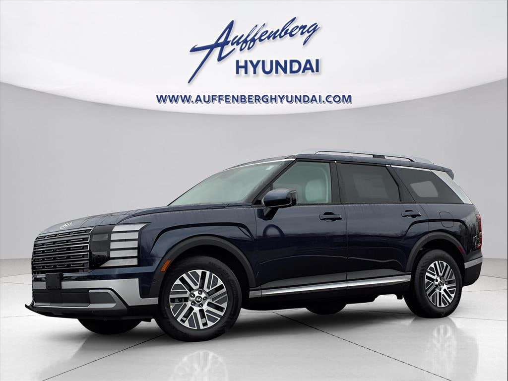 Classy Blue Pearl 2026 Hyundai Palisade Hybrid SEL Premium 7 Passenger 4D Sport Utility 2.5L Turbocharged GDI 4-Cylinder Hybrid AWD 6-Speed Automatic 2.5L Turbocharged GDI 4-Cylinder Hybrid, 3rd row seats: split-bench, 4-Wheel Disc Brakes, 8 Speakers, ABS brakes, Air Conditioning, Alloy wheels, AM/FM radio: SiriusXM, Apple CarPlay & Android Auto, Audio memory, Auto High-beam Headlights, Auto-dimming door mirrors, Auto-dimming Rear-View mirror, Auto-leveling suspension, Automatic temperature control, Brake assist, Bumpers: body-color, Cargo Net, Cargo Tray, Carpeted Floor Mats, Compass, Delay-off headlights, Driver door bin, Driver vanity mirror, Dual front impact airbags, Dual front side impact airbags, Electronic Stability Control, Emergency communication system: None, Exterior Parking Camera Rear, First Aid Kit, Four wheel independent suspension, Front anti-roll bar, Front Bucket Seats, Front Center Armrest, Front dual zone A/C, Front reading lights, Fully automatic headlights, Garage door transmitter: HomeLink, H-Tex Leatherette Seat Trim, Heated and Ventilated Front Bucket Seats, Heated door mirrors, Heated front seats, Heated rear seats, Heated steering wheel, HVAC memory, Illuminated entry, Knee airbag, Leather steering wheel, Low tire pressure warning, Memory seat, Navigation System, Occupant sensing airbag, Option Group 01, Outside temperature display, Overhead airbag, Overhead console, Panic alarm, Passenger door bin, Passenger vanity mirror, Power door mirrors, Power driver seat, Power Liftgate, Power moonroof, Power passenger seat, Power steering, Power windows, Radio data system, Radio: Infotainment Navigation System, Rear air conditioning, Rear anti-roll bar, Rear audio controls, Rear reading lights, Rear side impact airbag, Rear window defroster, Rear window wiper, Reclining 3rd row seat, Remote keyless entry, Roadside Assistance Kit, Security system, Speed control, Split folding rear seat, Spoiler, Steering wheel mounted audio controls, Tachometer, Telescoping steering wheel, Tilt steering wheel, Traction control, Trip computer, Turn signal indicator mirrors, Variably intermittent wipers, Ventilated front seats, Ventilated rear seats, Wheels: 18" x 8.0J Alloy, 2.5L Turbocharged GDI 4-Cylinder Hybrid. Price includes$1000 - Hyundai HMF Dealer Choice : $1000 discount and 5.49% APR for 24 months. $44.09 per $1000 financed. Available to well qualified buyers who finance through Hyundai Motor Finance. H704. Exp. 12/01/2025