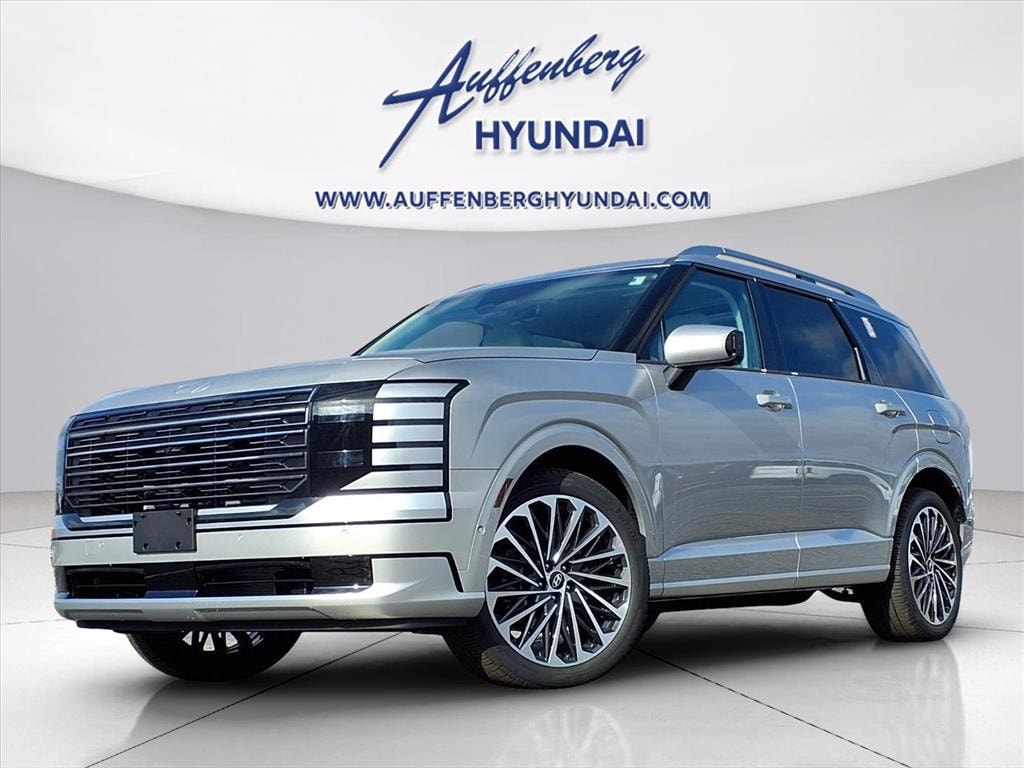 Typhoon Silver Metallic 2026 Hyundai Palisade Calligraphy 4D Sport Utility V6 AWD 8-Speed Automatic 14 Speakers, 3rd row seats: split-bench, 4-Wheel Disc Brakes, ABS brakes, Air Conditioning, Alloy wheels, AM/FM radio: SiriusXM, Apple CarPlay & Android Auto, Audio memory, Auto High-beam Headlights, Auto-dimming door mirrors, Auto-dimming Rear-View mirror, Auto-leveling suspension, Automatic temperature control, Brake assist, Bumpers: body-color, Cargo Net, Cargo Organizer, Cargo Tray, Carpeted Floor Mats, Compass, Delay-off headlights, Driver door bin, Driver vanity mirror, Dual front impact airbags, Dual front side impact airbags, Electronic Stability Control, Emergency communication system: None, Exterior Parking Camera Rear, First Aid Kit, Four wheel independent suspension, Front anti-roll bar, Front Bucket Seats, Front Center Armrest, Front dual zone A/C, Front reading lights, Fully automatic headlights, Garage door transmitter: HomeLink, Genuine wood console insert, Genuine wood dashboard insert, Heads-Up Display, Heated and Ventilated Front Bucket Seats, Heated door mirrors, Heated front seats, Heated rear seats, Heated steering wheel, HVAC memory, Illuminated entry, Knee airbag, Leather steering wheel, Low tire pressure warning, Memory seat, Navigation System, Occupant sensing airbag, Option Group 01, Outside temperature display, Overhead airbag, Overhead console, Panic alarm, Passenger door bin, Passenger vanity mirror, Power door mirrors, Power driver seat, Power Liftgate, Power moonroof, Power passenger seat, Power steering, Power windows, Premium Nappa Leather Seat Trim, Radio data system, Radio: Infotainment Navigation System, Rain sensing wipers, Rear air conditioning, Rear anti-roll bar, Rear audio controls, Rear reading lights, Rear side impact airbag, Rear window defroster, Rear window wiper, Reclining 3rd row seat, Remote keyless entry, Roadside Assistance Kit, Security system, Speed control, Split folding rear seat, Spoiler, Steering wheel mounted audio controls, Tachometer, Telescoping steering wheel, Tilt steering wheel, Traction control, Trip computer, Turn signal indicator mirrors, Variably intermittent wipers, Ventilated front seats, Ventilated rear seats, Wheels: 21" x 8.5J Alloy. Price includes$1000 - Hyundai HMF Dealer Choice : $1000 discount and 5.39% APR for 24 months. $44.05 per $1000 financed. Available to well qualified buyers who finance through Hyundai Motor Finance. H704. Exp. 03/31/2026 $2000 - Sales Event Cash. Exp. 03/31/2026