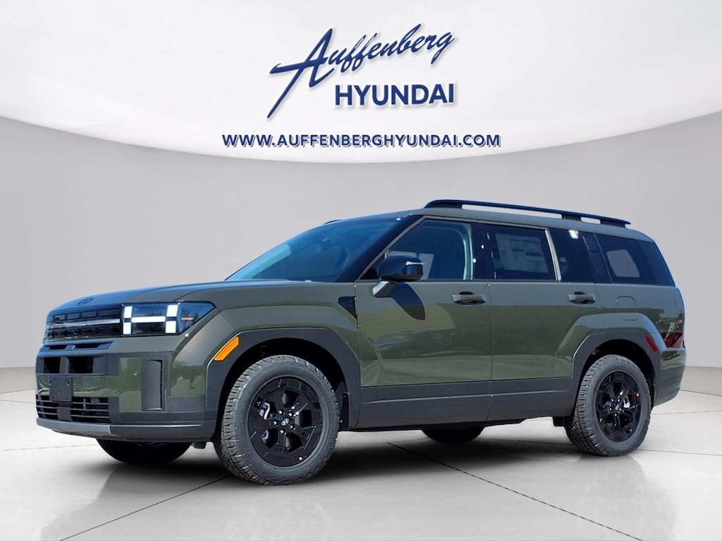 Rockwood Green 2026 Hyundai Santa Fe XRT 4D Sport Utility 2.5L I4 AWD 8-Speed Automatic with SHIFTRONIC AWD, Black Premium Synthetic, 3rd row seats: bench, 4-Wheel Disc Brakes, 6 Speakers, ABS brakes, Air Conditioning, Alloy wheels, AM/FM radio: SiriusXM, Apple CarPlay & Android Auto, Auto High-beam Headlights, Automatic temperature control, Brake assist, Bumpers: body-color, Cargo Cover/Screen, Cargo Net, Cargo Tray, Carpeted Floor Mats, Delay-off headlights, Driver door bin, Driver vanity mirror, Dual front impact airbags, Dual front side impact airbags, Electronic Stability Control, Emergency communication system, Exterior Parking Camera Rear, First Aid Kit, Four wheel independent suspension, Front anti-roll bar, Front Bucket Seats, Front Center Armrest, Front dual zone A/C, Front reading lights, Fully automatic headlights, H-Tex Leatherette Seat Trim, Heated door mirrors, Heated Front Bucket Seats, Heated front seats, Illuminated entry, Knee airbag, Leather steering wheel, Low tire pressure warning, Mudguards, Navigation System, Occupant sensing airbag, Option Group 01, Outside temperature display, Overhead airbag, Overhead console, Panic alarm, Passenger door bin, Passenger vanity mirror, Power door mirrors, Power driver seat, Power Liftgate, Power moonroof, Power steering, Power windows, Radio: AM/FM/HD Display Audio, Rear anti-roll bar, Rear seat center armrest, Rear side impact airbag, Rear window defroster, Rear window wiper, Remote keyless entry, Roadside Assistance Kit, Security system, Speed control, Speed-sensing steering, Split folding rear seat, Spoiler, Steering wheel mounted audio controls, Tachometer, Telescoping steering wheel, Tilt steering wheel, Traction control, Trip computer, Turn signal indicator mirrors, Variably intermittent wipers, Wheels: 18" x 7.5J Dark Alloy, AWD, Black Premium Synthetic.