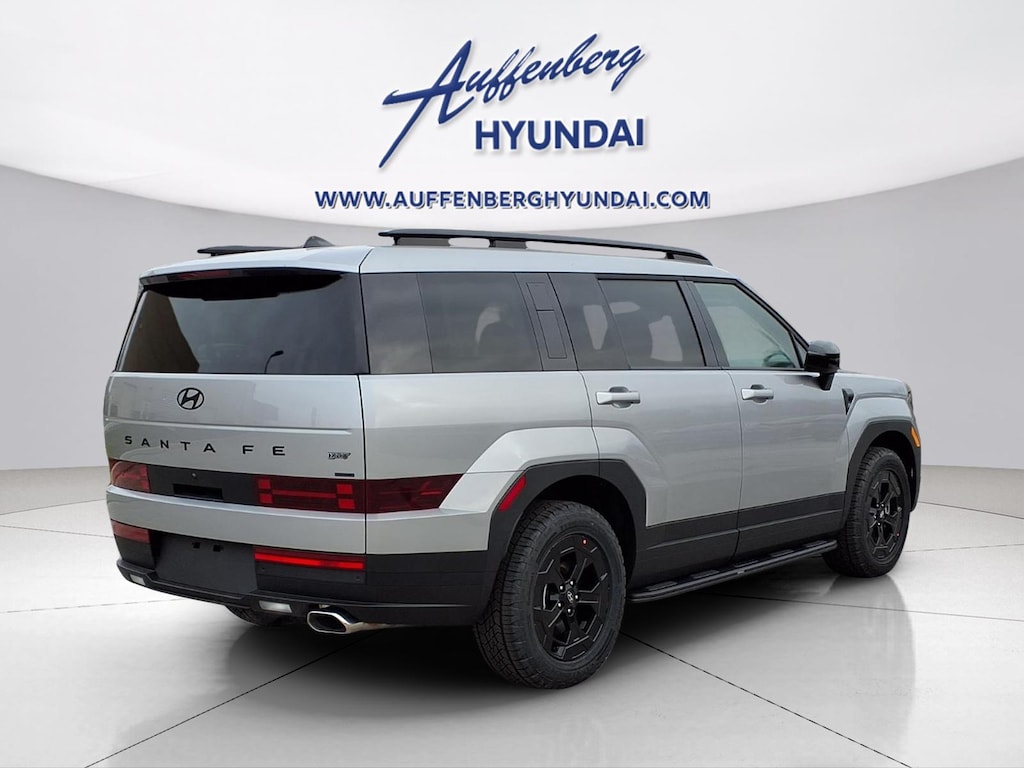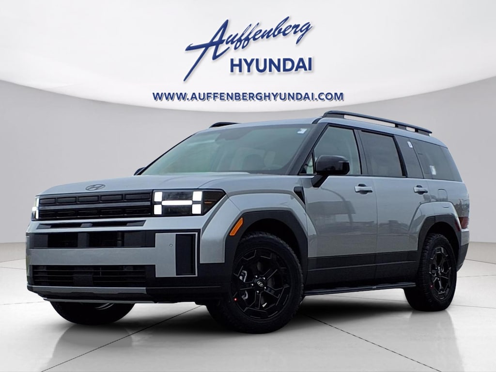 Shimmering Silver 2026 Hyundai Santa Fe XRT 4D Sport Utility 2.5L I4 AWD 8-Speed Automatic with SHIFTRONIC AWD, Black Premium Synthetic, 3rd row seats: bench, 4-Wheel Disc Brakes, 6 Speakers, ABS brakes, Air Conditioning, Alloy wheels, AM/FM radio: SiriusXM, Apple CarPlay & Android Auto, Auto High-beam Headlights, Automatic temperature control, Brake assist, Bumpers: body-color, Cargo Cover/Screen, Cargo Net, Cargo Tray, Carpeted Floor Mats, Delay-off headlights, Driver door bin, Driver vanity mirror, Dual front impact airbags, Dual front side impact airbags, Electronic Stability Control, Emergency communication system, Exterior Parking Camera Rear, First Aid Kit, Four wheel independent suspension, Front anti-roll bar, Front Bucket Seats, Front Center Armrest, Front dual zone A/C, Front reading lights, Fully automatic headlights, H-Tex Leatherette Seat Trim, Heated door mirrors, Heated Front Bucket Seats, Heated front seats, Illuminated entry, Knee airbag, Leather steering wheel, Low tire pressure warning, Navigation System, Occupant sensing airbag, Option Group 01, Outside temperature display, Overhead airbag, Overhead console, Panic alarm, Passenger door bin, Passenger vanity mirror, Power door mirrors, Power driver seat, Power Liftgate, Power moonroof, Power steering, Power windows, Radio: AM/FM/HD Display Audio, Rear anti-roll bar, Rear seat center armrest, Rear side impact airbag, Rear window defroster, Rear window wiper, Remote keyless entry, Roadside Assistance Kit, Security system, Side Steps, Speed control, Speed-sensing steering, Split folding rear seat, Spoiler, Steering wheel mounted audio controls, Tachometer, Telescoping steering wheel, Tilt steering wheel, Traction control, Trip computer, Turn signal indicator mirrors, Variably intermittent wipers, Wheels: 18" x 7.5J Dark Alloy, AWD, Black Premium Synthetic.
