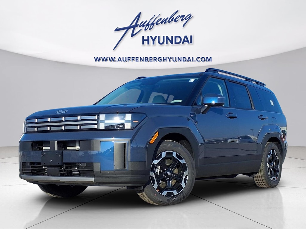 Atlantis Blue 2026 Hyundai Santa Fe SEL 4D Sport Utility 2.5L I4 AWD 8-Speed Automatic with SHIFTRONIC AWD, Gray Premium Synthetic, 18" x 7.5J Alloy Wheels, 3rd row seats: bench, 4-Wheel Disc Brakes, 6 Speakers, ABS brakes, Air Conditioning, All Season Fitted Liners, Alloy wheels, AM/FM radio: SiriusXM, Apple CarPlay & Android Auto, Auto High-beam Headlights, Automatic temperature control, Brake assist, Bumpers: body-color, Cargo Cover/Screen, Cargo Net, Cargo Tray, Carpeted Floor Mats, Delay-off headlights, Driver door bin, Driver vanity mirror, Dual front impact airbags, Dual front side impact airbags, Electronic Stability Control, Emergency communication system, Exterior Parking Camera Rear, First Aid Kit, Four wheel independent suspension, Front anti-roll bar, Front Bucket Seats, Front Center Armrest, Front dual zone A/C, Front reading lights, Fully automatic headlights, H-Tex Leatherette Seat Trim, Heated door mirrors, Heated Front Bucket Seats, Heated front seats, Illuminated entry, Knee airbag, Leather steering wheel, Low tire pressure warning, Occupant sensing airbag, Option Group 01, Outside temperature display, Overhead airbag, Overhead console, Panic alarm, Passenger door bin, Passenger vanity mirror, Power door mirrors, Power driver seat, Power Liftgate, Power steering, Power windows, Radio: AM/FM/HD Display Audio, Rear anti-roll bar, Rear seat center armrest, Rear side impact airbag, Rear window defroster, Rear window wiper, Remote keyless entry, Security system, Speed control, Speed-sensing steering, Split folding rear seat, Spoiler, Steering wheel mounted audio controls, Tachometer, Telescoping steering wheel, Tilt steering wheel, Traction control, Trip computer, Turn signal indicator mirrors, Variably intermittent wipers, AWD, Gray Premium Synthetic.