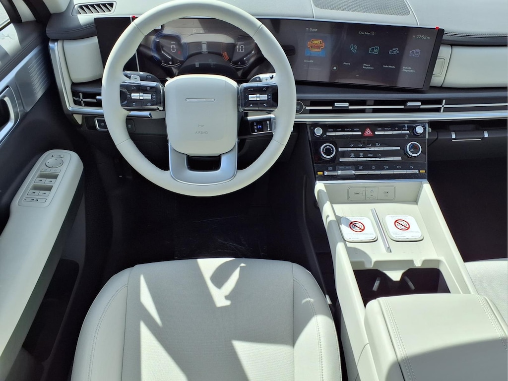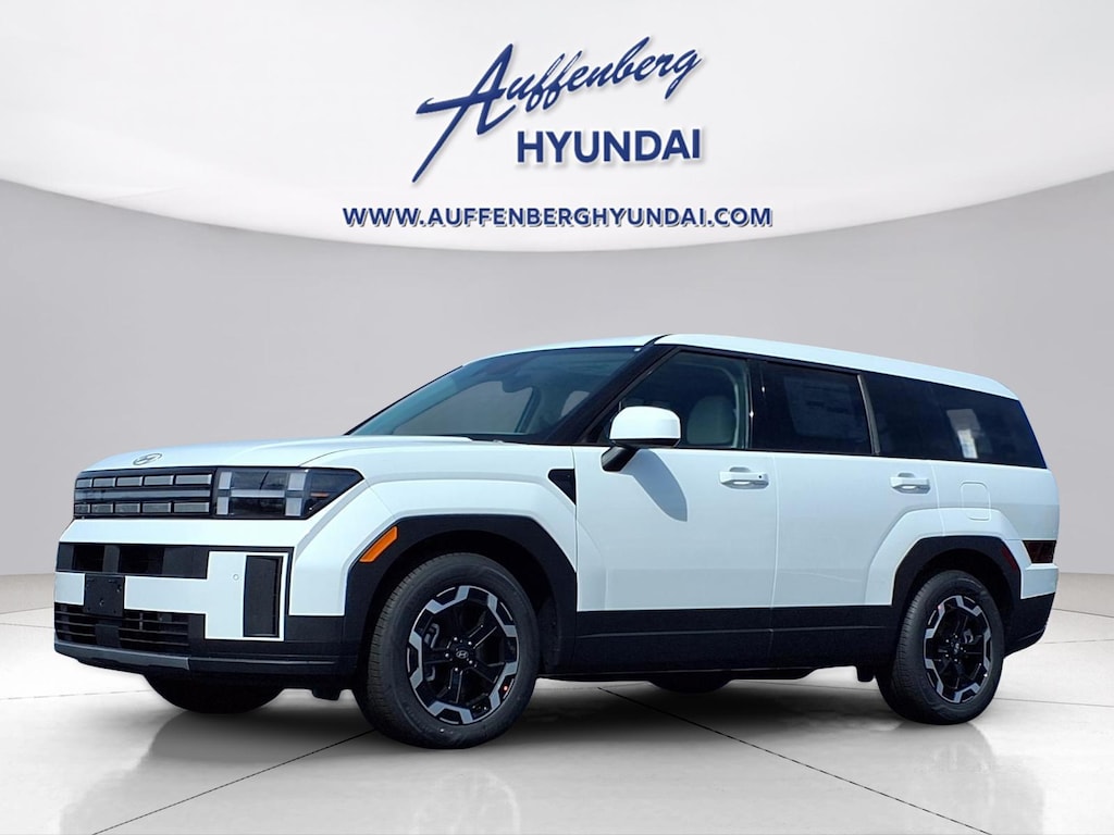 Serenity White 2026 Hyundai Santa Fe SE 4D Sport Utility 2.5L I4 AWD 8-Speed Automatic with SHIFTRONIC AWD, Gray Cloth, 18" x 7.5J Alloy Wheels, 3rd row seats: bench, 4-Wheel Disc Brakes, 6 Speakers, ABS brakes, Air Conditioning, Alloy wheels, AM/FM radio: SiriusXM, Apple CarPlay & Android Auto, Auto High-beam Headlights, Brake assist, Bumpers: body-color, Cargo Net, Carpeted Floor Mats, Delay-off headlights, Driver door bin, Driver vanity mirror, Dual front impact airbags, Dual front side impact airbags, Electronic Stability Control, Emergency communication system, Exterior Parking Camera Rear, Four wheel independent suspension, Front anti-roll bar, Front Bucket Seats, Front Center Armrest, Front reading lights, Fully automatic headlights, Heated door mirrors, Illuminated entry, Knee airbag, Leather steering wheel, Low tire pressure warning, Occupant sensing airbag, Option Group 01, Outside temperature display, Overhead airbag, Overhead console, Panic alarm, Passenger door bin, Passenger vanity mirror, Power door mirrors, Power Liftgate, Power steering, Power windows, Radio: AM/FM/HD Display Audio, Rear anti-roll bar, Rear seat center armrest, Rear side impact airbag, Rear window defroster, Rear window wiper, Remote keyless entry, Security system, Speed control, Speed-sensing steering, Split folding rear seat, Spoiler, Steering wheel mounted audio controls, Tachometer, Telescoping steering wheel, Tilt steering wheel, Traction control, Trip computer, Variably intermittent wipers, YES Essentials Stain-Resistant Cloth Seat Trim, AWD, Gray Cloth.