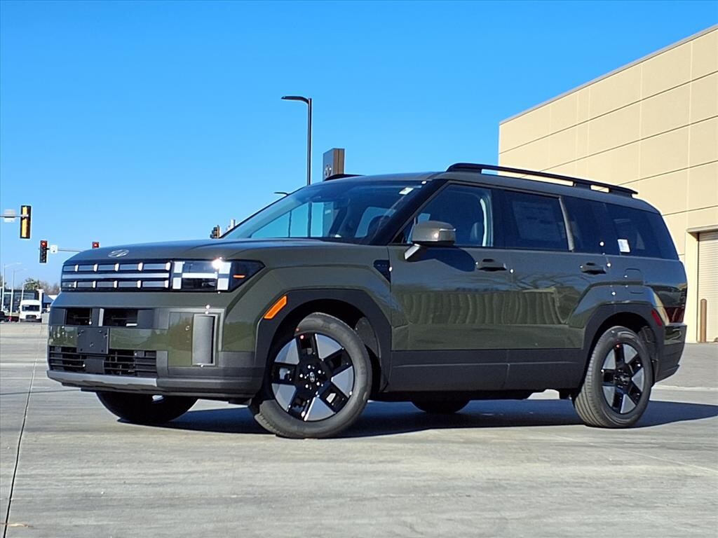 Rockwood Green 2026 Hyundai Santa Fe Hybrid SEL 4D Sport Utility I4 FWD 6-Speed Automatic with Shiftronic I4, 18" x 7.5J Alloy Wheels, 3rd row seats: bench, 4-Wheel Disc Brakes, 6 Speakers, ABS brakes, Air Conditioning, Alloy wheels, AM/FM radio: SiriusXM, Apple CarPlay & Android Auto, Auto High-beam Headlights, Automatic temperature control, Brake assist, Bumpers: body-color, Cargo Net, Carpeted Floor Mats, Delay-off headlights, Driver door bin, Driver vanity mirror, Dual front impact airbags, Dual front side impact airbags, Electronic Stability Control, Emergency communication system, Exterior Parking Camera Rear, First Aid Kit, Four wheel independent suspension, Front anti-roll bar, Front Bucket Seats, Front Center Armrest, Front dual zone A/C, Front reading lights, Fully automatic headlights, H-Tex Leatherette Seat Trim, Heated door mirrors, Heated Front Bucket Seats, Heated front seats, Illuminated entry, Knee airbag, Leather steering wheel, Low tire pressure warning, Mudguards, Occupant sensing airbag, Option Group 01, Outside temperature display, Overhead airbag, Overhead console, Panic alarm, Passenger door bin, Passenger vanity mirror, Power door mirrors, Power driver seat, Power Liftgate, Power steering, Power windows, Radio: AM/FM/HD Display Audio, Rear anti-roll bar, Rear seat center armrest, Rear side impact airbag, Rear window defroster, Rear window wiper, Remote keyless entry, Roadside Assistance Kit, Security system, Speed control, Speed-sensing steering, Split folding rear seat, Spoiler, Steering wheel mounted audio controls, Tachometer, Telescoping steering wheel, Tilt steering wheel, Traction control, Trip computer, Turn signal indicator mirrors, Variably intermittent wipers, I4.