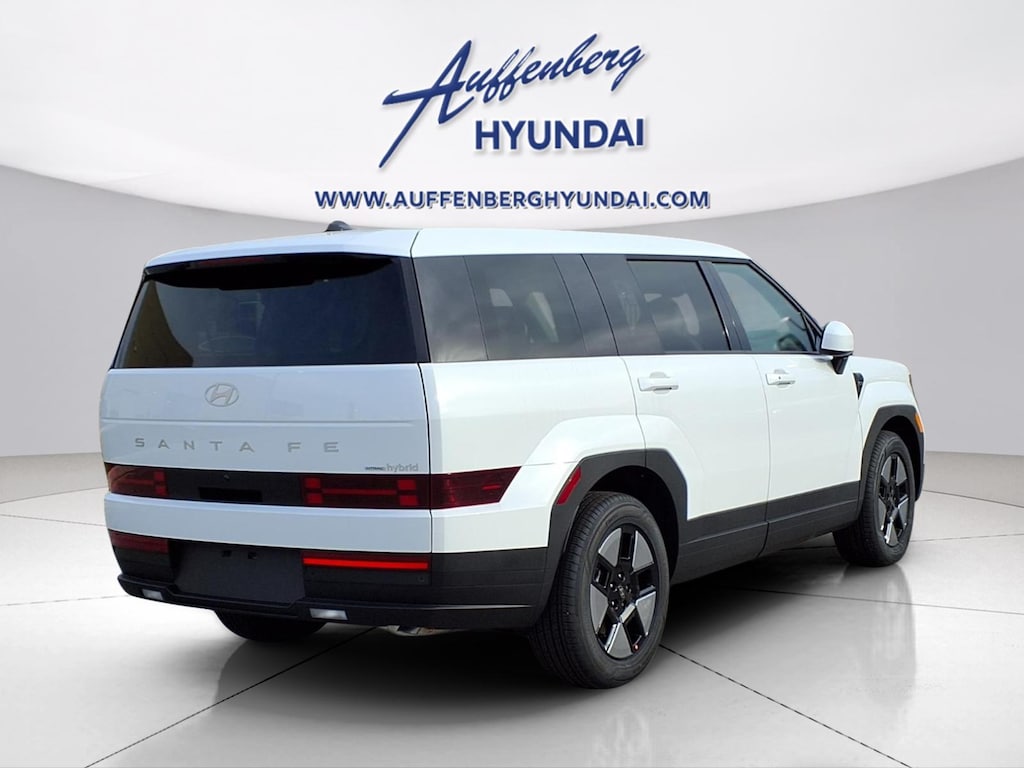 Serenity White 2026 Hyundai Santa Fe Hybrid SE 4D Sport Utility I4 AWD 6-Speed Automatic with Shiftronic I4, 18" x 7.5J Alloy Wheels, 3rd row seats: bench, 4-Wheel Disc Brakes, 6 Speakers, ABS brakes, Air Conditioning, Alloy wheels, AM/FM radio: SiriusXM, Apple CarPlay & Android Auto, Auto High-beam Headlights, Automatic temperature control, Brake assist, Bumpers: body-color, Carpeted Floor Mats, Delay-off headlights, Driver door bin, Driver vanity mirror, Dual front impact airbags, Dual front side impact airbags, Electronic Stability Control, Emergency communication system, Exterior Parking Camera Rear, Four wheel independent suspension, Front anti-roll bar, Front Bucket Seats, Front Center Armrest, Front dual zone A/C, Front reading lights, Fully automatic headlights, Heated door mirrors, Illuminated entry, Knee airbag, Leather steering wheel, Low tire pressure warning, Occupant sensing airbag, Option Group 01, Outside temperature display, Overhead airbag, Overhead console, Panic alarm, Passenger door bin, Passenger vanity mirror, Power door mirrors, Power Liftgate, Power steering, Power windows, Radio: AM/FM/HD Display Audio, Rear anti-roll bar, Rear seat center armrest, Rear side impact airbag, Rear window defroster, Rear window wiper, Remote keyless entry, Security system, Speed control, Speed-sensing steering, Split folding rear seat, Spoiler, Steering wheel mounted audio controls, Tachometer, Telescoping steering wheel, Tilt steering wheel, Traction control, Trip computer, Variably intermittent wipers, YES Essentials Stain-Resistant Cloth Seat Trim, I4.