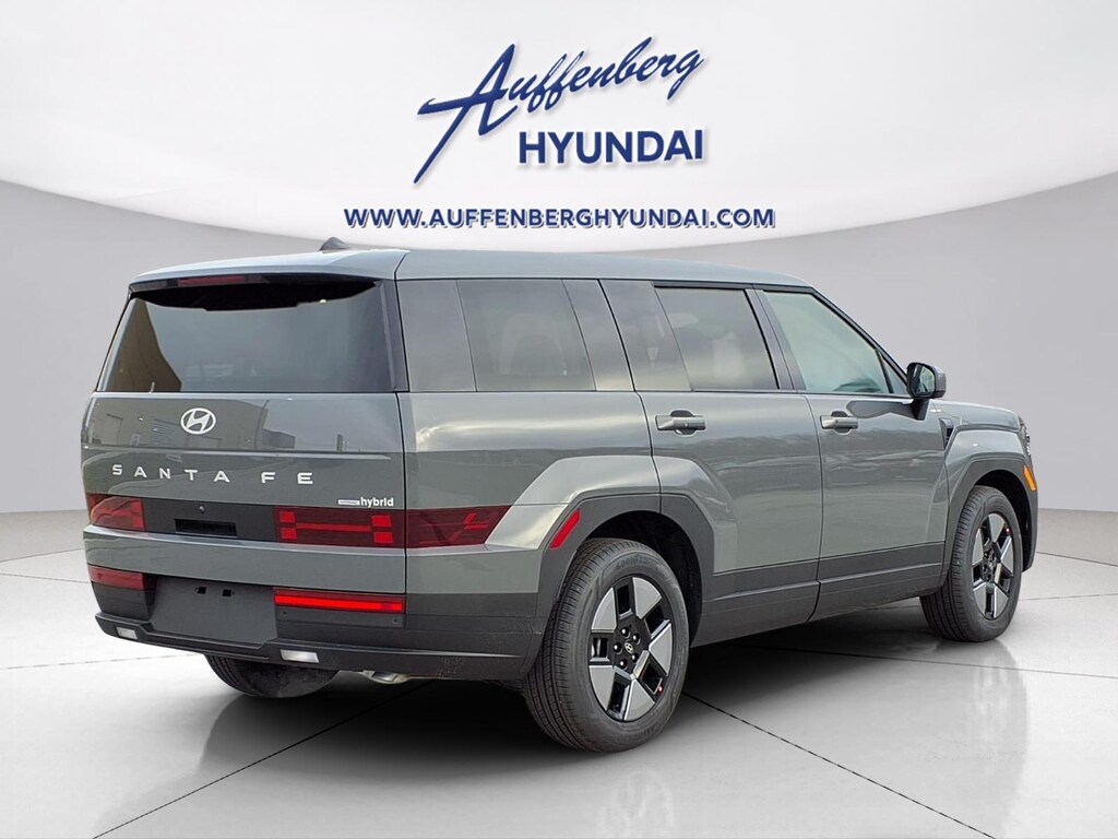 Hampton Gray 2026 Hyundai Santa Fe Hybrid SE 4D Sport Utility I4 AWD 6-Speed Automatic with Shiftronic I4, 18" x 7.5J Alloy Wheels, 3rd row seats: bench, 4-Wheel Disc Brakes, 6 Speakers, ABS brakes, Air Conditioning, Alloy wheels, AM/FM radio: SiriusXM, Apple CarPlay & Android Auto, Auto High-beam Headlights, Automatic temperature control, Brake assist, Bumpers: body-color, Carpeted Floor Mats, Delay-off headlights, Driver door bin, Driver vanity mirror, Dual front impact airbags, Dual front side impact airbags, Electronic Stability Control, Emergency communication system, Exterior Parking Camera Rear, Four wheel independent suspension, Front anti-roll bar, Front Bucket Seats, Front Center Armrest, Front dual zone A/C, Front reading lights, Fully automatic headlights, Heated door mirrors, Illuminated entry, Knee airbag, Leather steering wheel, Low tire pressure warning, Occupant sensing airbag, Option Group 01, Outside temperature display, Overhead airbag, Overhead console, Panic alarm, Passenger door bin, Passenger vanity mirror, Power door mirrors, Power Liftgate, Power steering, Power windows, Radio: AM/FM/HD Display Audio, Rear anti-roll bar, Rear seat center armrest, Rear side impact airbag, Rear window defroster, Rear window wiper, Remote keyless entry, Security system, Speed control, Speed-sensing steering, Split folding rear seat, Spoiler, Steering wheel mounted audio controls, Tachometer, Telescoping steering wheel, Tilt steering wheel, Traction control, Trip computer, Variably intermittent wipers, YES Essentials Stain-Resistant Cloth Seat Trim, I4.