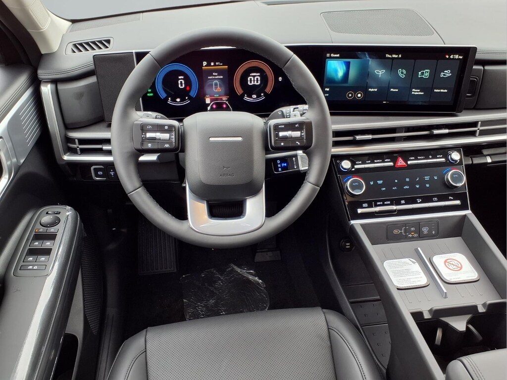 Rockwood Green 2026 Hyundai Santa Fe Hybrid SEL 4D Sport Utility I4 AWD 6-Speed Automatic with Shiftronic I4, 18" x 7.5J Alloy Wheels, 3rd row seats: bench, 4-Wheel Disc Brakes, 6 Speakers, ABS brakes, Air Conditioning, Alloy wheels, AM/FM radio: SiriusXM, Apple CarPlay & Android Auto, Auto High-beam Headlights, Automatic temperature control, Brake assist, Bumpers: body-color, Cargo Cover/Screen, Cargo Net, Cargo Organizer, Cargo Tray, Carpeted Floor Mats, Delay-off headlights, Driver door bin, Driver vanity mirror, Dual front impact airbags, Dual front side impact airbags, Electronic Stability Control, Emergency communication system, Exterior Parking Camera Rear, First Aid Kit, Four wheel independent suspension, Front anti-roll bar, Front Bucket Seats, Front Center Armrest, Front dual zone A/C, Front reading lights, Fully automatic headlights, H-Tex Leatherette Seat Trim, Heated door mirrors, Heated Front Bucket Seats, Heated front seats, Illuminated entry, Knee airbag, Leather steering wheel, Low tire pressure warning, Occupant sensing airbag, Option Group 01, Outside temperature display, Overhead airbag, Overhead console, Panic alarm, Passenger door bin, Passenger vanity mirror, Power door mirrors, Power driver seat, Power Liftgate, Power steering, Power windows, Radio: AM/FM/HD Display Audio, Rear anti-roll bar, Rear seat center armrest, Rear side impact airbag, Rear window defroster, Rear window wiper, Remote keyless entry, Roadside Assistance Kit, Security system, Speed control, Speed-sensing steering, Split folding rear seat, Spoiler, Steering wheel mounted audio controls, Tachometer, Telescoping steering wheel, Tilt steering wheel, Traction control, Trip computer, Turn signal indicator mirrors, Variably intermittent wipers, I4.