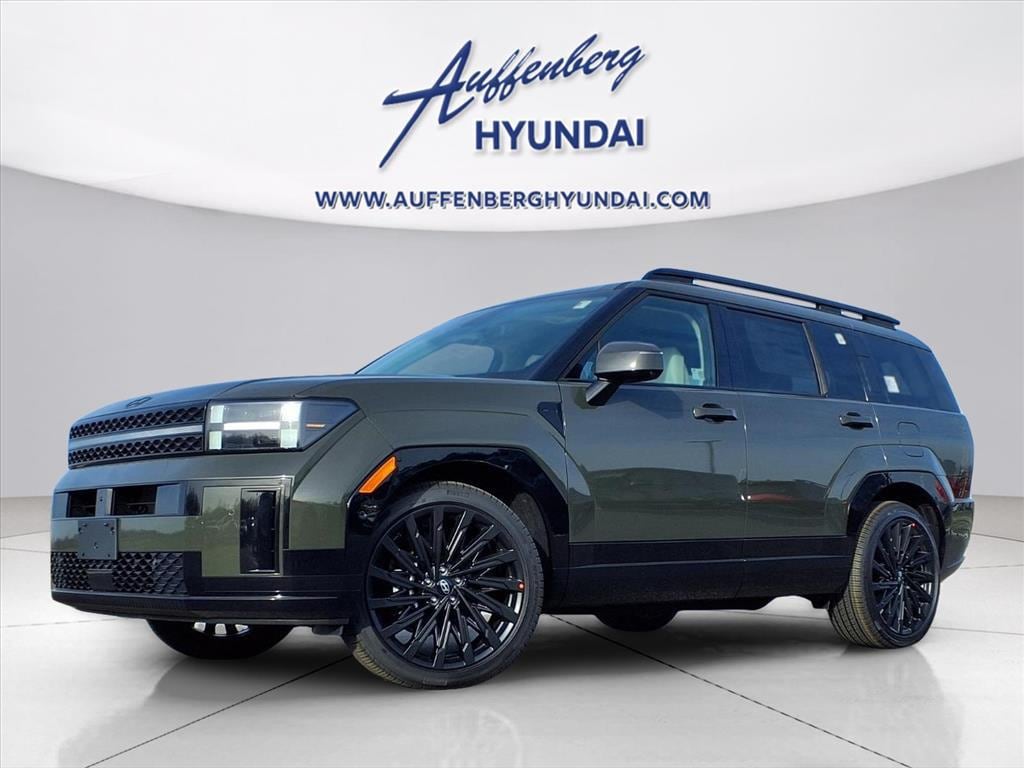 Rockwood Green 2026 Hyundai Santa Fe Calligraphy 4D Sport Utility 2.5L I4 AWD 8-Speed Automatic with SHIFTRONIC AWD, Gray Leather, 12 Speakers, 3rd row seats: bench, 4-Wheel Disc Brakes, ABS brakes, Air Conditioning, All Season Fitted Liners, Alloy wheels, AM/FM radio: SiriusXM, Apple CarPlay & Android Auto, Auto High-beam Headlights, Auto-dimming Rear-View mirror, Automatic temperature control, Brake assist, Bumpers: body-color, Cargo Cover/Screen, Cargo Net, Carpeted Floor Mats, Delay-off headlights, Driver door bin, Driver vanity mirror, Dual front impact airbags, Dual front side impact airbags, Electronic Stability Control, Emergency communication system, Exterior Parking Camera Rear, First Aid Kit, Four wheel independent suspension, Front anti-roll bar, Front Bucket Seats, Front Center Armrest, Front dual zone A/C, Front reading lights, Fully automatic headlights, Garage door transmitter: HomeLink, Heads-Up Display, Heated and Ventilated Front Bucket Seats, Heated door mirrors, Heated front seats, Heated rear seats, Heated steering wheel, Illuminated entry, Knee airbag, Leather steering wheel, Low tire pressure warning, Memory seat, Navigation System, Occupant sensing airbag, Option Group 01, Outside temperature display, Overhead airbag, Overhead console, Panic alarm, Passenger door bin, Passenger vanity mirror, Power door mirrors, Power driver seat, Power Liftgate, Power moonroof, Power passenger seat, Power steering, Power windows, Quilted Premium Nappa Leather Seat Trim, Radio: AM/FM/HD Bose Premium Audio System, Rain sensing wipers, Rear anti-roll bar, Rear side impact airbag, Rear window defroster, Rear window wiper, Remote keyless entry, Security system, Speed control, Speed-sensing steering, Split folding rear seat, Spoiler, Steering wheel mounted audio controls, Tachometer, Telescoping steering wheel, Tilt steering wheel, Traction control, Trip computer, Turn signal indicator mirrors, Variably intermittent wipers, Ventilated front seats, Wheels: 21" x 8.5J Unique Dark Finish Alloy, AWD, Gray Leather.