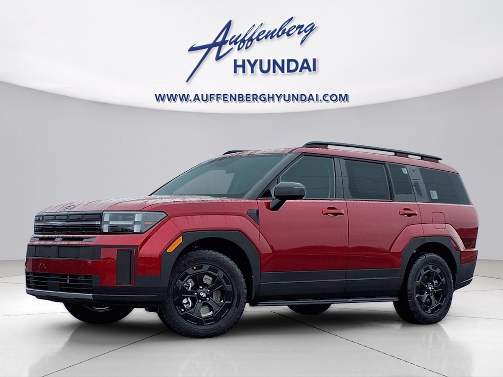 Ultimate Red 2026 Hyundai Santa Fe XRT 4D Sport Utility 2.5L I4 AWD 8-Speed Automatic with SHIFTRONIC AWD, Black Premium Synthetic, 3rd row seats: bench, 4-Wheel Disc Brakes, 6 Speakers, ABS brakes, Air Conditioning, Alloy wheels, AM/FM radio: SiriusXM, Apple CarPlay & Android Auto, Auto High-beam Headlights, Automatic temperature control, Brake assist, Bumpers: body-color, Cargo Cover/Screen, Cargo Net, Cargo Tray, Carpeted Floor Mats, Delay-off headlights, Driver door bin, Driver vanity mirror, Dual front impact airbags, Dual front side impact airbags, Electronic Stability Control, Emergency communication system, Exterior Parking Camera Rear, First Aid Kit, Four wheel independent suspension, Front anti-roll bar, Front Bucket Seats, Front Center Armrest, Front dual zone A/C, Front reading lights, Fully automatic headlights, H-Tex Leatherette Seat Trim, Heated door mirrors, Heated Front Bucket Seats, Heated front seats, Illuminated entry, Knee airbag, Leather steering wheel, Low tire pressure warning, Mudguards, Navigation System, Occupant sensing airbag, Option Group 01, Outside temperature display, Overhead airbag, Overhead console, Panic alarm, Passenger door bin, Passenger vanity mirror, Power door mirrors, Power driver seat, Power Liftgate, Power moonroof, Power steering, Power windows, Radio: AM/FM/HD Display Audio, Rear anti-roll bar, Rear seat center armrest, Rear side impact airbag, Rear window defroster, Rear window wiper, Remote keyless entry, Security system, Side Steps, Speed control, Speed-sensing steering, Split folding rear seat, Spoiler, Steering wheel mounted audio controls, Tachometer, Telescoping steering wheel, Tilt steering wheel, Traction control, Trip computer, Turn signal indicator mirrors, Variably intermittent wipers, Wheels: 18" x 7.5J Dark Alloy, AWD, Black Premium Synthetic.