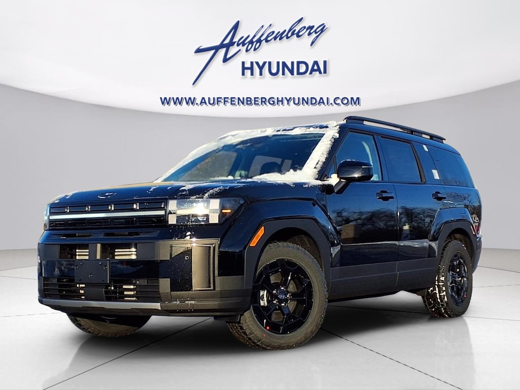 Phantom Black 2026 Hyundai Santa Fe XRT 4D Sport Utility 2.5L I4 AWD 8-Speed Automatic with SHIFTRONIC AWD, Black Premium Synthetic, 3rd row seats: bench, 4-Wheel Disc Brakes, 6 Speakers, ABS brakes, Air Conditioning, Alloy wheels, AM/FM radio: SiriusXM, Apple CarPlay & Android Auto, Auto High-beam Headlights, Automatic temperature control, Brake assist, Bumpers: body-color, Cargo Net, Cargo Tray, Carpeted Floor Mats, Delay-off headlights, Driver door bin, Driver vanity mirror, Dual front impact airbags, Dual front side impact airbags, Electronic Stability Control, Emergency communication system, Exterior Parking Camera Rear, First Aid Kit, Four wheel independent suspension, Front anti-roll bar, Front Bucket Seats, Front Center Armrest, Front dual zone A/C, Front reading lights, Fully automatic headlights, H-Tex Leatherette Seat Trim, Heated door mirrors, Heated Front Bucket Seats, Heated front seats, Illuminated entry, Knee airbag, Leather steering wheel, Low tire pressure warning, Navigation System, Occupant sensing airbag, Option Group 01, Outside temperature display, Overhead airbag, Overhead console, Panic alarm, Passenger door bin, Passenger vanity mirror, Power door mirrors, Power driver seat, Power Liftgate, Power moonroof, Power steering, Power windows, Radio: AM/FM/HD Display Audio, Rear anti-roll bar, Rear seat center armrest, Rear side impact airbag, Rear window defroster, Rear window wiper, Remote keyless entry, Roof Rack Crossbars, Security system, Speed control, Speed-sensing steering, Split folding rear seat, Spoiler, Steering wheel mounted audio controls, Tachometer, Telescoping steering wheel, Tilt steering wheel, Traction control, Trip computer, Turn signal indicator mirrors, Variably intermittent wipers, Wheels: 18" x 7.5J Dark Alloy, AWD, Black Premium Synthetic.