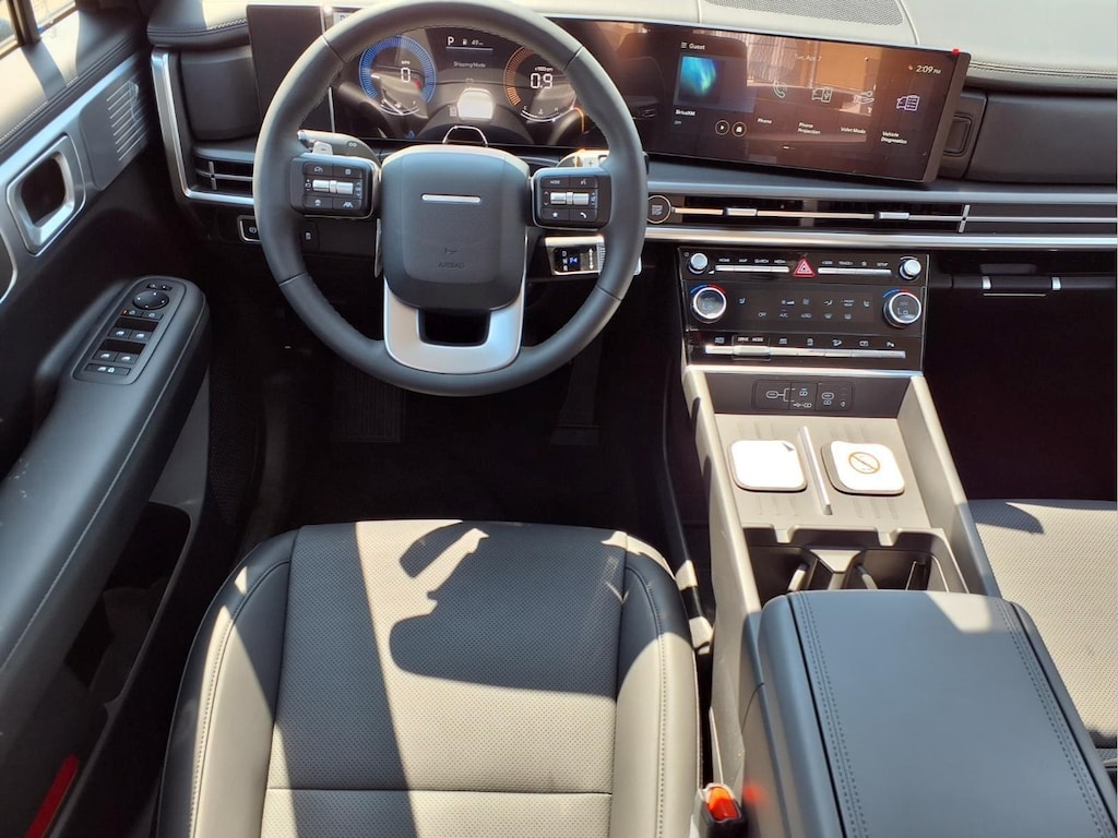 Hampton Gray 2026 Hyundai Santa Fe SEL 4D Sport Utility 2.5L I4 AWD 8-Speed Automatic with SHIFTRONIC AWD, Black Artificial Leather, 18" x 7.5J Alloy Wheels, 3rd row seats: bench, 4-Wheel Disc Brakes, 6 Speakers, ABS brakes, Air Conditioning, Alloy wheels, AM/FM radio: SiriusXM, Apple CarPlay & Android Auto, Auto High-beam Headlights, Automatic temperature control, Brake assist, Bumpers: body-color, Cargo Cover/Screen, Cargo Net, Cargo Tray, Carpeted Floor Mats, Delay-off headlights, Driver door bin, Driver vanity mirror, Dual front impact airbags, Dual front side impact airbags, Electronic Stability Control, Emergency communication system, Exterior Parking Camera Rear, First Aid Kit, Four wheel independent suspension, Front anti-roll bar, Front Bucket Seats, Front Center Armrest, Front dual zone A/C, Front reading lights, Fully automatic headlights, H-Tex Leatherette Seat Trim, Heated door mirrors, Heated Front Bucket Seats, Heated front seats, Illuminated entry, Knee airbag, Leather steering wheel, Low tire pressure warning, Occupant sensing airbag, Option Group 01, Outside temperature display, Overhead airbag, Overhead console, Panic alarm, Passenger door bin, Passenger vanity mirror, Power door mirrors, Power driver seat, Power Liftgate, Power steering, Power windows, Radio: AM/FM/HD Display Audio, Rear anti-roll bar, Rear seat center armrest, Rear side impact airbag, Rear window defroster, Rear window wiper, Remote keyless entry, Roof Rack Crossbars, Security system, Speed control, Speed-sensing steering, Split folding rear seat, Spoiler, Steering wheel mounted audio controls, Tachometer, Telescoping steering wheel, Tilt steering wheel, Traction control, Trip computer, Turn signal indicator mirrors, Variably intermittent wipers, AWD, Black Artificial Leather.