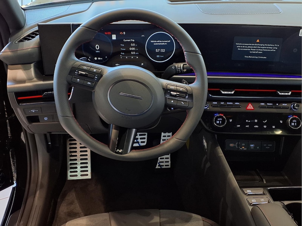 Abyss Black 2026 Hyundai Sonata N Line 4D Sedan I4 FWD 8-Speed Dark Gray Premium Synthetic, 12 Speakers, 19" x 8.0J Aluminum Alloy Wheels, 4-Wheel Disc Brakes, ABS brakes, Air Conditioning, All-Season Fitted Liners, Alloy wheels, AM/FM radio: SiriusXM, Apple CarPlay & Android Auto, Auto High-beam Headlights, Auto-dimming Rear-View mirror, Automatic temperature control, Brake assist, Bumpers: body-color, Carpeted Floor Mats, Delay-off headlights, Driver door bin, Driver vanity mirror, Dual front impact airbags, Dual front side impact airbags, Electronic Stability Control, Emergency communication system: None, Exterior Parking Camera Rear, First Aid Kit, Four wheel independent suspension, Front anti-roll bar, Front Bucket Seats, Front Center Armrest, Front dual zone A/C, Front reading lights, Fully automatic headlights, H-Tex/Suede Combination Seating Surfaces, Heated door mirrors, Heated front seats, Heated N Unique Sport Seats, Illuminated entry, Knee airbag, Leather steering wheel, Low tire pressure warning, Navigation System, Occupant sensing airbag, Option Group 01, Outside temperature display, Overhead airbag, Overhead console, Panic alarm, Passenger door bin, Passenger vanity mirror, Power door mirrors, Power driver seat, Power moonroof, Power steering, Power windows, Radio data system, Radio: AM/FM/HD/SiriusXM/MP3/Navigation, Rear anti-roll bar, Rear seat center armrest, Rear side impact airbag, Rear window defroster, Remote keyless entry, Security system, Speed control, Speed-sensing steering, Speed-Sensitive Wipers, Split folding rear seat, Spoiler, Sport steering wheel, Steering wheel mounted audio controls, Tachometer, Telescoping steering wheel, Tilt steering wheel, Traction control, Trip computer, Variably intermittent wipers, Dark Gray Premium Synthetic.