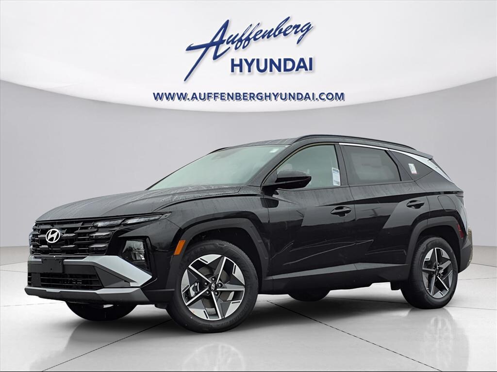 Ash Black 2026 Hyundai Tucson Hybrid SEL 4D Sport Utility 1.6L I4 DGI Hybrid Turbocharged DOHC 16V LEV3-SULEV30 AWD 6-Speed Automatic 1.6L I4 DGI Hybrid Turbocharged DOHC 16V LEV3-SULEV30, 18" x 7.5J Alloy Wheels, 4-Wheel Disc Brakes, 6 Speakers, ABS brakes, Air Conditioning, Alloy wheels, AM/FM radio: SiriusXM, Apple CarPlay & Android Auto, Auto High-beam Headlights, Automatic temperature control, Brake assist, Bumpers: body-color, Cargo Net, Cargo Tray, Carpeted Floor Mats, Delay-off headlights, Driver door bin, Driver vanity mirror, Dual front impact airbags, Dual front side impact airbags, Electronic Stability Control, Emergency communication system: Bluelink+, First Aid Kit, Four wheel independent suspension, Front anti-roll bar, Front Bucket Seats, Front Center Armrest, Front dual zone A/C, Front reading lights, Fully automatic headlights, Heated door mirrors, Heated Front Bucket Seats, Heated front seats, Illuminated entry, Low tire pressure warning, Occupant sensing airbag, Option Group 01, Outside temperature display, Overhead airbag, Overhead console, Panic alarm, Passenger door bin, Passenger vanity mirror, Power door mirrors, Power driver seat, Power Liftgate, Power steering, Power windows, Radio data system, Radio: AM/FM/HD Audio System, Rear anti-roll bar, Rear reading lights, Rear seat center armrest, Rear side impact airbag, Rear window defroster, Rear window wiper, Remote keyless entry, Roof Rack Cross Rails, Security system, Speed control, Split folding rear seat, Spoiler, Stain & Odor Resistant Cloth Seat Trim, Steering wheel mounted audio controls, Tachometer, Telescoping steering wheel, Tilt steering wheel, Traction control, Trip computer, Variably intermittent wipers, 1.6L I4 DGI Hybrid Turbocharged DOHC 16V LEV3-SULEV30.