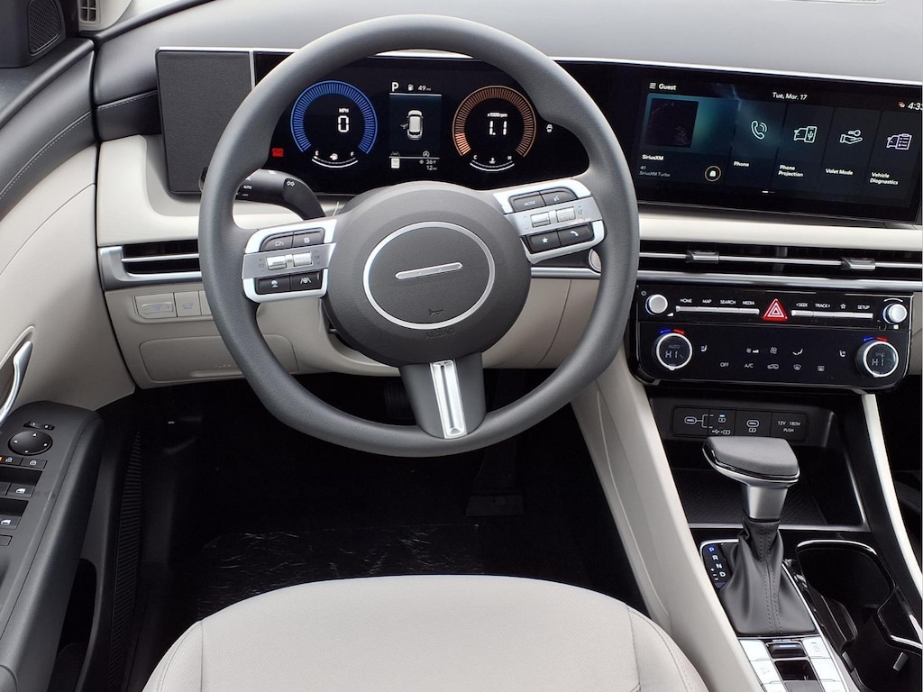 Serenity White Pearl 2026 Hyundai Tucson SEL 4D Sport Utility 2.5L I4 DGI DOHC 16V LEV3-SULEV30 187hp FWD 8-Speed Automatic with SHIFTRONIC 18" x 7.5J Alloy Wheels, 4-Wheel Disc Brakes, 6 Speakers, ABS brakes, Air Conditioning, Alloy wheels, AM/FM radio: SiriusXM, Apple CarPlay & Android Auto, Auto High-beam Headlights, Automatic temperature control, Brake assist, Bumpers: body-color, Cargo Net, Cargo Organizer, Cargo Tray, Carpeted Floor Mats, Cloth Seat Trim, Delay-off headlights, Driver door bin, Driver vanity mirror, Dual front impact airbags, Dual front side impact airbags, Electronic Stability Control, Emergency communication system: None, First Aid Kit, Four wheel independent suspension, Front anti-roll bar, Front Bucket Seats, Front Center Armrest, Front dual zone A/C, Front reading lights, Fully automatic headlights, Heated door mirrors, Heated Front Bucket Seats, Heated front seats, Illuminated entry, Low tire pressure warning, Mudguards, Occupant sensing airbag, Option Group 01, Outside temperature display, Overhead airbag, Overhead console, Panic alarm, Passenger door bin, Passenger vanity mirror, Power door mirrors, Power driver seat, Power Liftgate, Power steering, Power windows, Radio data system, Radio: AM/FM/HD Audio System, Rear anti-roll bar, Rear reading lights, Rear seat center armrest, Rear side impact airbag, Rear window defroster, Rear window wiper, Remote keyless entry, Security system, Speed control, Split folding rear seat, Spoiler, Steering wheel mounted audio controls, Tachometer, Telescoping steering wheel, Tilt steering wheel, Traction control, Trip computer, Variably intermittent wipers.