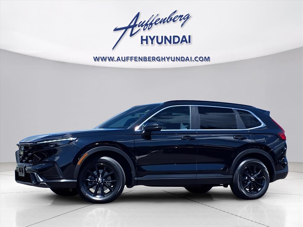 2023 Honda CR-V Hybrid Sport 4D Sport Utility 2.0L I4 DOHC 16V eCVT AWD Crystal Black Pearl 2.0L I4 DOHC 16V, 4-Wheel Disc Brakes, 6 Speakers, ABS brakes, Adaptive Cruise Control: Adaptive Cruise Control (ACC) with Low-Speed Follow, Alloy wheels, Apple CarPlay/Android Auto, Auto High-beam Headlights, Automatic temperature control, Brake assist, Cloth Seat Trim, Delay-off headlights, Dual front impact airbags, Dual front side impact airbags, Electronic Stability Control, Exterior Parking Camera Rear, Front Bucket Seats, Front dual zone A/C, Fully automatic headlights, Heated door mirrors, Heated Front Bucket Seats, Heated front seats, Knee airbag, Occupant sensing airbag, Overhead airbag, Panic alarm, Power door mirrors, Power driver seat, Power moonroof, Power steering, Power windows, Radio data system, Radio: 240-Watt AM/FM Audio System, Rear side impact airbag, Rear window defroster, Remote keyless entry, Security system, Speed control, Speed-Sensitive Wipers, Split folding rear seat, Spoiler, Steering wheel mounted audio controls, Telescoping steering wheel, Tilt steering wheel, Traction control, Turn signal indicator mirrors, Wheels: 18" Berlina Black Alloy, 4.438 Axle Ratio, Air Conditioning, Bumpers: body-color, Compass, Driver door bin, Driver vanity mirror, Four wheel independent suspension, Front anti-roll bar, Front Center Armrest, Front reading lights, Illuminated entry, Leather Shift Knob, Leather steering wheel, Low tire pressure warning, Outside temperature display, Overhead console, Passenger door bin, Passenger vanity mirror, Rear anti-roll bar, Rear reading lights, Rear seat center armrest, Rear window wiper, Speed-sensing steering, Trip computer, Variably intermittent wipers, 2.0L I4 DOHC 16V, 4-Wheel Disc Brakes, 6 Speakers, ABS brakes, Adaptive Cruise Control: Adaptive Cruise Control (ACC) with Low-Speed Follow, Alloy wheels, Apple CarPlay/Android Auto, Auto High-beam Headlights, Automatic temperature control, Brake assist, Cloth Seat Trim, Delay-off headlights, Dual front impact airbags, Dual front side impact airbags, Electronic Stability Control, Exterior Parking Camera Rear, Front Bucket Seats, Front dual zone A/C, Fully automatic headlights, Heated door mirrors, Heated Front Bucket Seats, Heated front seats, Knee airbag, Occupant sensing airbag, Overhead airbag, Panic alarm, Power door mirrors, Power driver seat, Power moonroof, Power steering, Power windows, Radio data system, Radio: 240-Watt AM/FM Audio System, Rear side impact airbag, Rear window defroster, Remote keyless entry, Security system, Speed control, Speed-Sensitive Wipers, Split folding rear seat, Spoiler, Steering wheel mounted audio controls, Telescoping steering wheel, Tilt steering wheel, Traction control, Turn signal indicator mirrors, Wheels: 18" Berlina Black Alloy. 40/34 City/Highway MPG