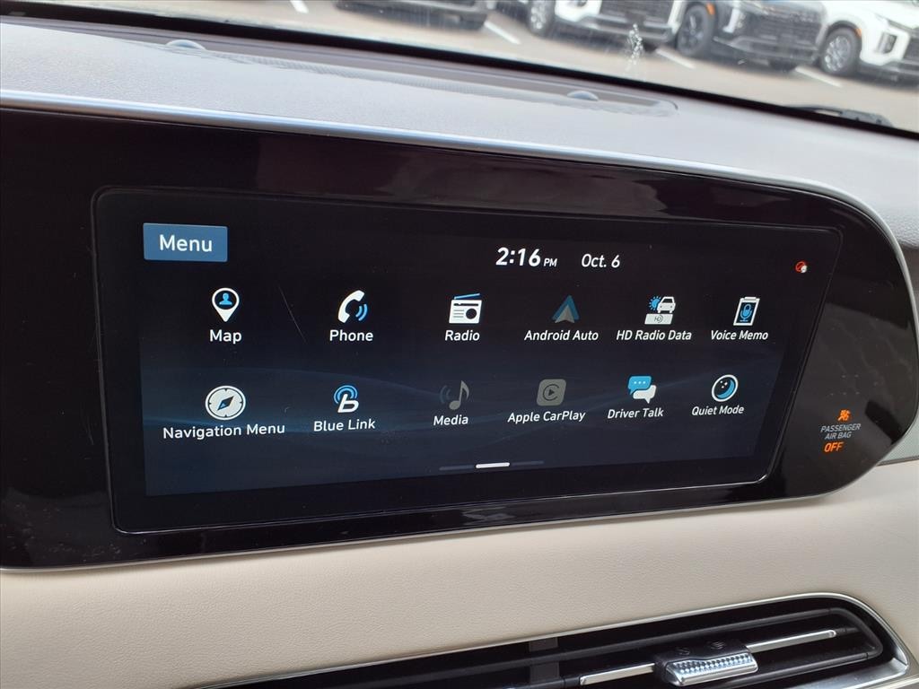 2020 Hyundai Palisade Limited 4D Sport Utility V6 8-Speed Automatic with SHIFTRONIC AWD Steel Graphite 12 Speakers, 3rd row seats: split-bench, 4-Wheel Disc Brakes, ABS brakes, Air Conditioning, Alloy wheels, AM/FM radio: SiriusXM, Apple CarPlay & Android Auto, Auto High-beam Headlights, Auto-dimming Rear-View mirror, Auto-leveling suspension, Automatic temperature control, Brake assist, Delay-off headlights, Dual front impact airbags, Dual front side impact airbags, Electronic Stability Control, Emergency communication system, Front Bucket Seats, Front dual zone A/C, Fully automatic headlights, Garage door transmitter: HomeLink, harman/kardon® Speakers, Heads-Up Display, Heated & Ventilated Front Bucket Seats, Heated door mirrors, Heated front seats, Heated rear seats, Heated steering wheel, Knee airbag, Memory seat, Navigation System, Occupant sensing airbag, Overhead airbag, Panic alarm, Power door mirrors, Power driver seat, Power Liftgate, Power moonroof, Power passenger seat, Power steering, Power windows, Premium Nappa Leather Seat Trim, Radio data system, Radio: AM/FM/MP3 Premium Audio System, Rain sensing wipers, Rear air conditioning, Rear window defroster, Reclining 3rd row seat, Remote keyless entry, Security system, Speed control, Split folding rear seat, Spoiler, Steering wheel mounted audio controls, Telescoping steering wheel, Tilt steering wheel, Traction control, Turn signal indicator mirrors, Ventilated front seats, Ventilated rear seats, Wheels: 20" x 7.5J 14-Spoke Premium Finish Alloy, 3.648 Axle Ratio, Bumper Applique, Bumpers: body-color, Cargo Cover/Screen, Carpeted Floor Mats, Compass, Driver door bin, Driver vanity mirror, Four wheel independent suspension, Front anti-roll bar, Front Center Armrest, Front reading lights, Illuminated entry, Low tire pressure warning, Option Group 01, Outside temperature display, Overhead console, Passenger door bin, Passenger vanity mirror, Rear anti-roll bar, Rear window wiper, Speed-sensing steering, Tachometer, Trip computer, Variably intermittent wipers, 12 Speakers, 3rd row seats: split-bench, 4-Wheel Disc Brakes, ABS brakes, Air Conditioning, Alloy wheels, AM/FM radio: SiriusXM, Apple CarPlay & Android Auto, Auto High-beam Headlights, Auto-dimming Rear-View mirror, Auto-leveling suspension, Automatic temperature control, Brake assist, Delay-off headlights, Dual front impact airbags, Dual front side impact airbags, Electronic Stability Control, Emergency communication system, Front Bucket Seats, Front dual zone A/C, Fully automatic headlights, Garage door transmitter: HomeLink, harman/kardon® Speakers, Heads-Up Display, Heated & Ventilated Front Bucket Seats, Heated door mirrors, Heated front seats, Heated rear seats, Heated steering wheel, Knee airbag, Memory seat, Navigation System, Occupant sensing airbag, Overhead airbag, Panic alarm, Power door mirrors, Power driver seat, Power Liftgate, Power moonroof, Power passenger seat, Power steering, Power windows, Premium Nappa Leather Seat Trim, Radio data system, Radio: AM/FM/MP3 Premium Audio System, Rain sensing wipers, Rear air conditioning, Rear window defroster, Reclining 3rd row seat, Remote keyless entry, Security system, Speed control, Split folding rear seat, Spoiler, Steering wheel mounted audio controls, Telescoping steering wheel, Tilt steering wheel, Traction control, Turn signal indicator mirrors, Ventilated front seats, Ventilated rear seats, Wheels: 20" x 7.5J 14-Spoke Premium Finish Alloy.