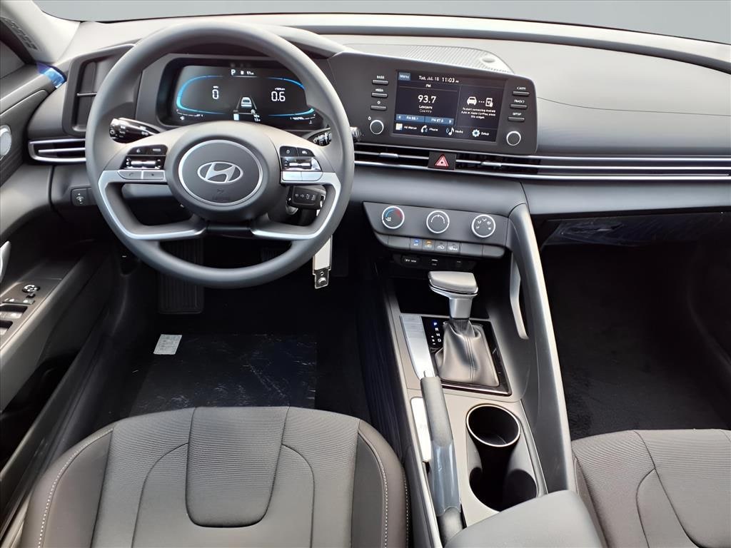 Serenity White 2025 Hyundai Elantra SE SRC 4D Sedan I4 FWD CVT 15" x 6.0J Alloy Wheels, 4-Wheel Disc Brakes, 6 Speakers, ABS brakes, Air Conditioning, Alloy Door Sills, Alloy wheels, AM/FM radio, Apple CarPlay & Android Auto, Auto High-beam Headlights, Brake assist, Bumpers: body-color, Cargo Net, Carpeted Floor Mats, Delay-off headlights, Driver door bin, Driver vanity mirror, Dual front impact airbags, Dual front side impact airbags, Electronic Stability Control, Exterior Parking Camera Rear, First Aid Kit, Front anti-roll bar, Front Bucket Seats, Front Center Armrest, Front reading lights, Front wheel independent suspension, Fully automatic headlights, Illuminated entry, Low tire pressure warning, Occupant sensing airbag, Option Group 01, Outside temperature display, Overhead airbag, Overhead console, Panic alarm, Passenger door bin, Passenger vanity mirror, Power door mirrors, Power steering, Power windows, Premium Cloth Seat Trim, Radio: AM/FM/HD Display Audio, Rear side impact airbag, Rear window defroster, Remote keyless entry, Security system, Severe Weather Kit, Speed control, Speed-sensing steering, Steering wheel mounted audio controls, Tachometer, Telescoping steering wheel, Tilt steering wheel, Traction control, Trip computer, Variably intermittent wipers.