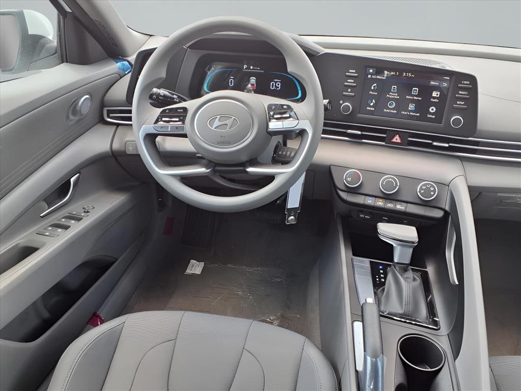 Serenity White 2025 Hyundai Elantra SE SRC 4D Sedan I4 FWD CVT 15" x 6.0J Alloy Wheels, 4-Wheel Disc Brakes, 6 Speakers, ABS brakes, Air Conditioning, All-Season Fitted Liners, Alloy wheels, AM/FM radio, Apple CarPlay & Android Auto, Auto High-beam Headlights, Brake assist, Bumpers: body-color, Carpeted Floor Mats, Delay-off headlights, Driver door bin, Driver vanity mirror, Dual front impact airbags, Dual front side impact airbags, Electronic Stability Control, Exterior Parking Camera Rear, First Aid Kit, Front anti-roll bar, Front Bucket Seats, Front Center Armrest, Front reading lights, Front wheel independent suspension, Fully automatic headlights, Illuminated entry, Low tire pressure warning, Occupant sensing airbag, Option Group 01, Outside temperature display, Overhead airbag, Overhead console, Panic alarm, Passenger door bin, Passenger vanity mirror, Power door mirrors, Power steering, Power windows, Premium Cloth Seat Trim, Radio: AM/FM/HD Display Audio, Rear side impact airbag, Rear window defroster, Remote keyless entry, Security system, Speed control, Speed-sensing steering, Steering wheel mounted audio controls, Tachometer, Telescoping steering wheel, Tilt steering wheel, Traction control, Trip computer, Variably intermittent wipers, Wheel Locks.