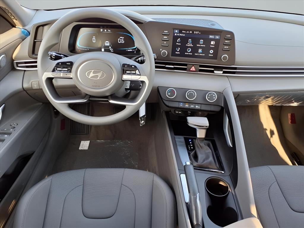Fluid Metal 2025 Hyundai Elantra SE SRC 4D Sedan I4 FWD CVT 15" x 6.0J Alloy Wheels, 4-Wheel Disc Brakes, 6 Speakers, ABS brakes, Air Conditioning, Alloy wheels, AM/FM radio, Apple CarPlay & Android Auto, Auto High-beam Headlights, Brake assist, Bumpers: body-color, Cargo Net, Cargo Side Bins, Carpeted Floor Mats, Delay-off headlights, Driver door bin, Driver vanity mirror, Dual front impact airbags, Dual front side impact airbags, Electronic Stability Control, Exterior Parking Camera Rear, First Aid Kit, Front anti-roll bar, Front Bucket Seats, Front Center Armrest, Front reading lights, Front wheel independent suspension, Fully automatic headlights, Illuminated entry, Low tire pressure warning, Occupant sensing airbag, Option Group 01, Outside temperature display, Overhead airbag, Overhead console, Panic alarm, Passenger door bin, Passenger vanity mirror, Power door mirrors, Power steering, Power windows, Premium Cloth Seat Trim, Radio: AM/FM/HD Display Audio, Rear side impact airbag, Rear window defroster, Remote keyless entry, Reversible Cargo Tray, Roadside Assistance Kit, Security system, Speed control, Speed-sensing steering, Steering wheel mounted audio controls, Tachometer, Telescoping steering wheel, Tilt steering wheel, Traction control, Trip computer, Variably intermittent wipers.