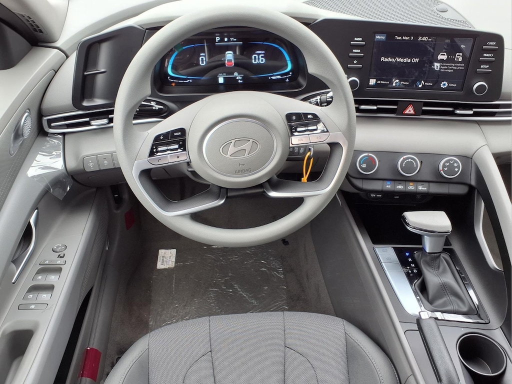 Serenity White 2026 Hyundai Elantra SE SRC 4D Sedan I4 FWD CVT 15" x 6.0J Alloy Wheels, 4-Wheel Disc Brakes, 6 Speakers, ABS brakes, Air Conditioning, Alloy wheels, AM/FM radio, Apple CarPlay & Android Auto, Auto High-beam Headlights, Brake assist, Bumpers: body-color, Cargo Net, Cargo Side Bins, Cargo Tray, Carpeted Floor Mats, Delay-off headlights, Driver door bin, Driver vanity mirror, Dual front impact airbags, Dual front side impact airbags, Electronic Stability Control, Exterior Parking Camera Rear, First Aid Kit, Front anti-roll bar, Front Bucket Seats, Front Center Armrest, Front reading lights, Front wheel independent suspension, Fully automatic headlights, Illuminated entry, Low tire pressure warning, Mudguards, Occupant sensing airbag, Option Group 01, Outside temperature display, Overhead airbag, Overhead console, Panic alarm, Passenger door bin, Passenger vanity mirror, Power door mirrors, Power steering, Power windows, Premium Cloth Seat Trim, Radio: AM/FM/HD Display Audio, Rear side impact airbag, Rear window defroster, Remote keyless entry, Security system, Speed control, Speed-sensing steering, Steering wheel mounted audio controls, Tachometer, Telescoping steering wheel, Tilt steering wheel, Traction control, Trip computer, Variably intermittent wipers.