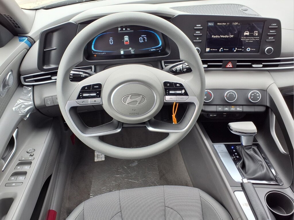 Abyss Black 2026 Hyundai Elantra SE SRC 4D Sedan I4 FWD CVT 15" x 6.0J Alloy Wheels, 4-Wheel Disc Brakes, 6 Speakers, ABS brakes, Air Conditioning, Alloy wheels, AM/FM radio, Apple CarPlay & Android Auto, Auto High-beam Headlights, Brake assist, Bumpers: body-color, Cargo Tray, Carpeted Floor Mats, Delay-off headlights, Driver door bin, Driver vanity mirror, Dual front impact airbags, Dual front side impact airbags, Electronic Stability Control, Exterior Parking Camera Rear, Front anti-roll bar, Front Bucket Seats, Front Center Armrest, Front reading lights, Front wheel independent suspension, Fully automatic headlights, Illuminated entry, Low tire pressure warning, Occupant sensing airbag, Option Group 01, Outside temperature display, Overhead airbag, Overhead console, Panic alarm, Passenger door bin, Passenger vanity mirror, Power door mirrors, Power steering, Power windows, Premium Cloth Seat Trim, Radio: AM/FM/HD Display Audio, Rear side impact airbag, Rear window defroster, Remote keyless entry, Security system, Speed control, Speed-sensing steering, Steering wheel mounted audio controls, Tachometer, Telescoping steering wheel, Tilt steering wheel, Traction control, Trip computer, Variably intermittent wipers.